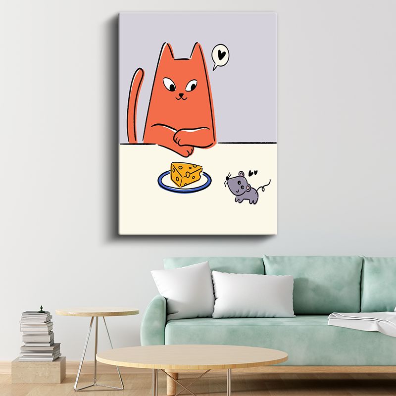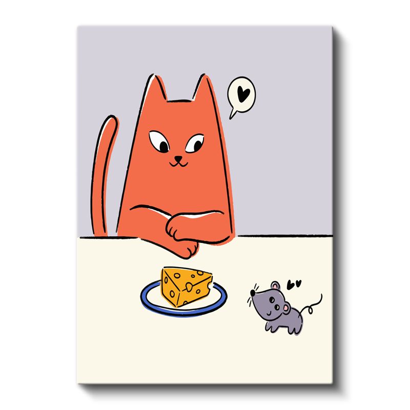 Kedi ve Fare - Peynir Dilimi Etrafında Dostluk Kanvas Tablo