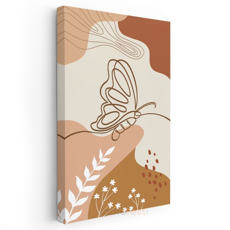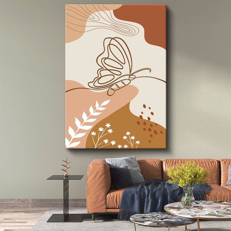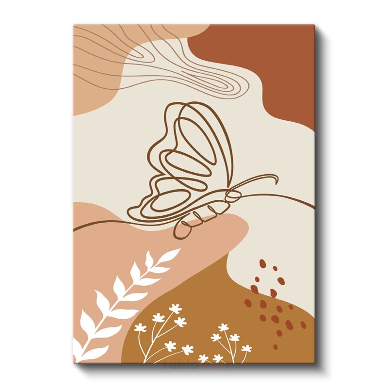 Kelebek Soyutlaması - Tek Çizgi Tekniğiyle Doğa Esintisi Kanvas Tablo