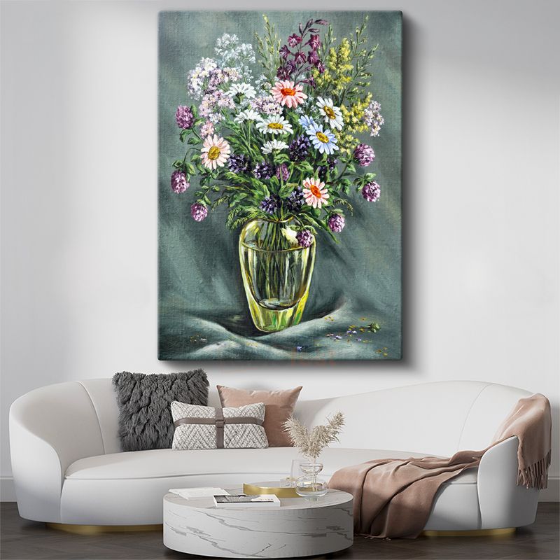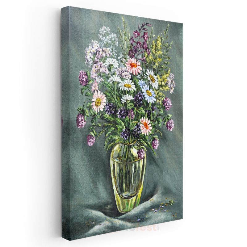 Kır Çiçekleri - Cam Vazoda Doğal Buket Kanvas Tablo