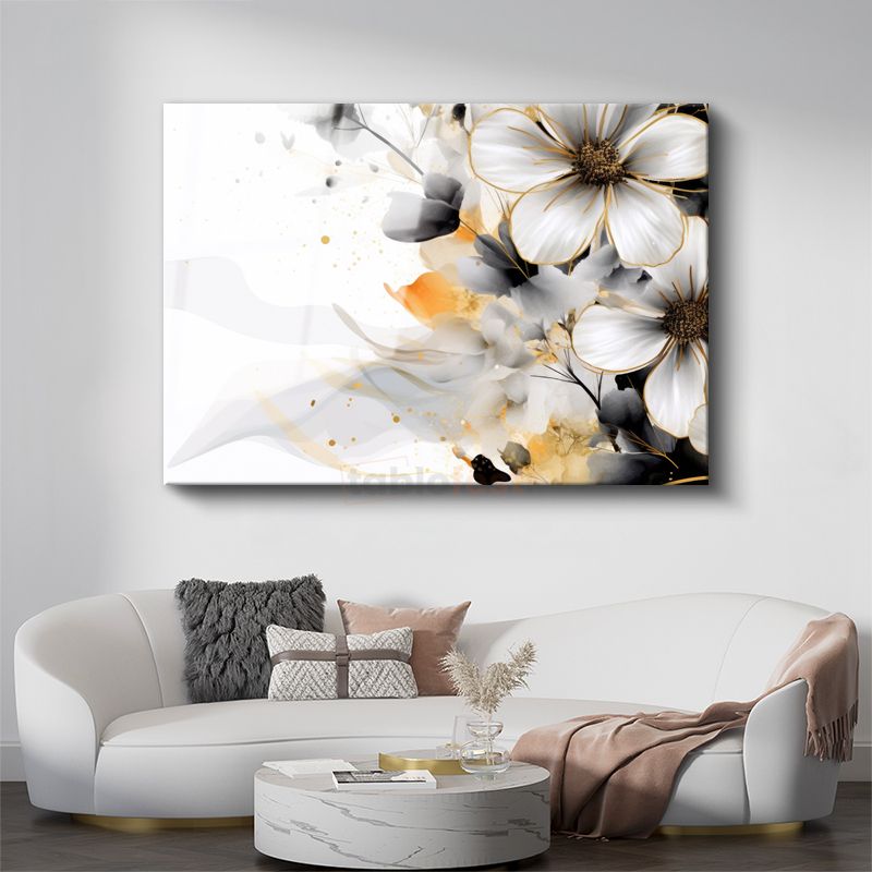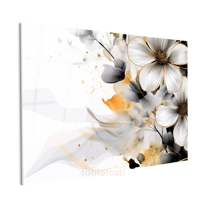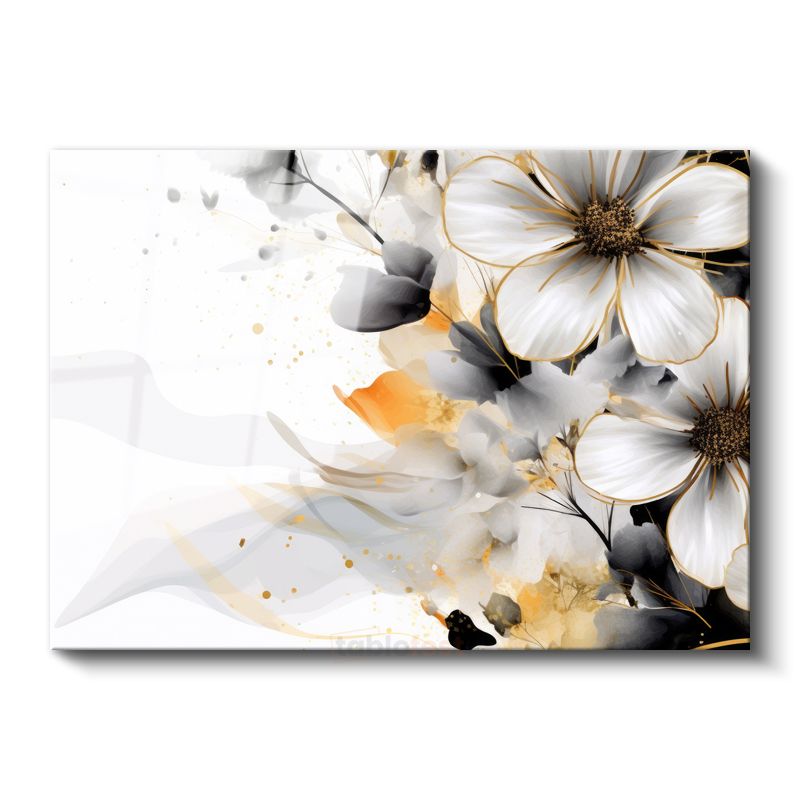 Kır Çiçekleri - Vintage Buket Kompozisyonu Cam Tablo