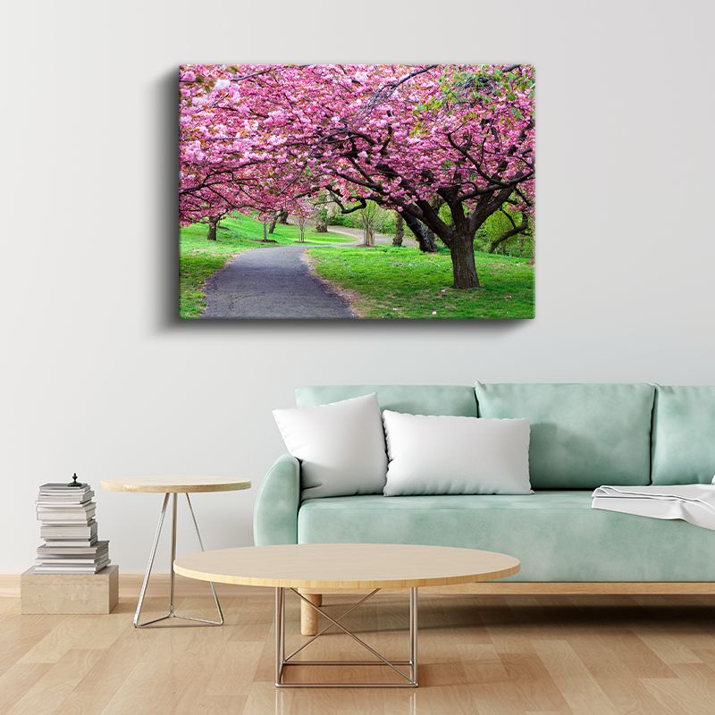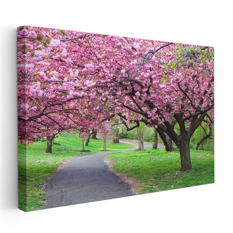 Kiraz Çiçeği Ağaçları - Bahar Parkı Manzarası Kanvas Tablo