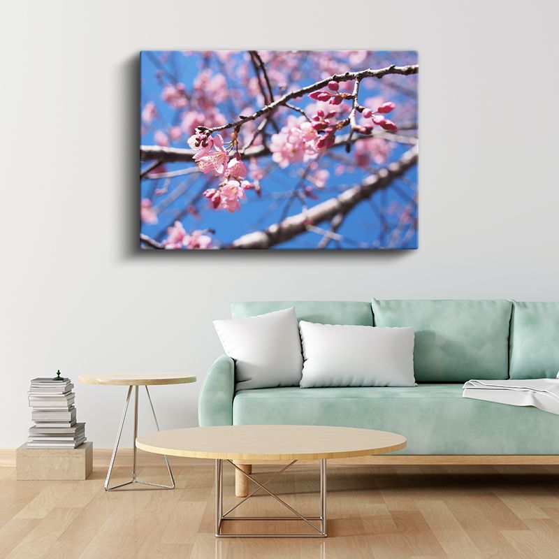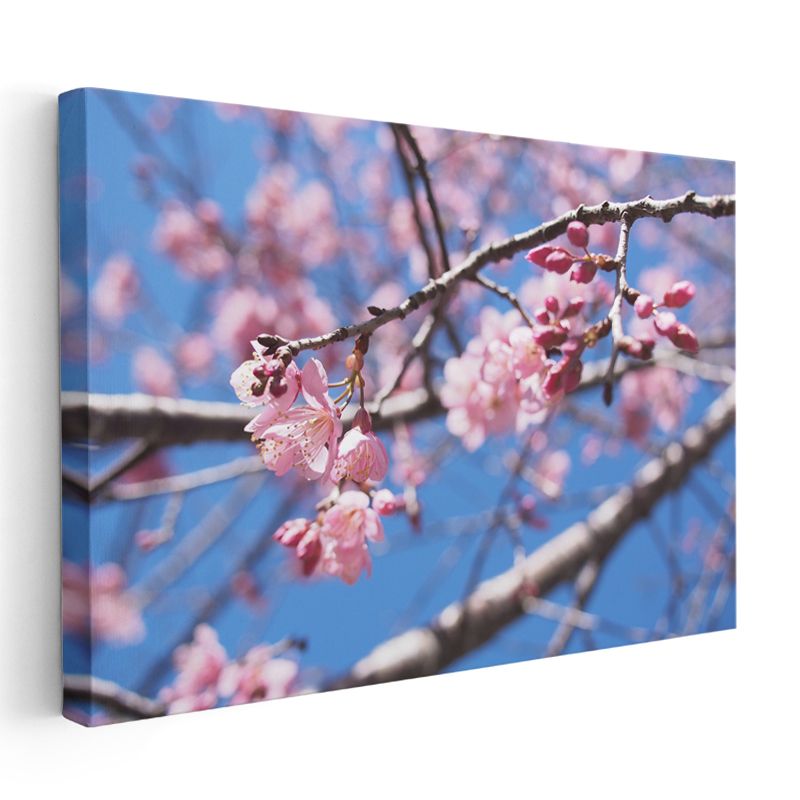 Kiraz Çiçeği - Siyah Taşlar Üzerinde Zen Aranjmanı Kanvas Tablo