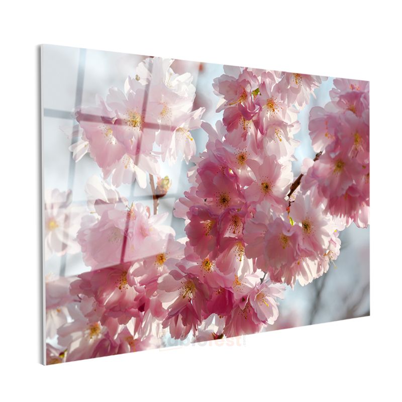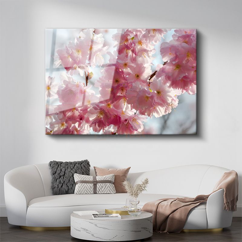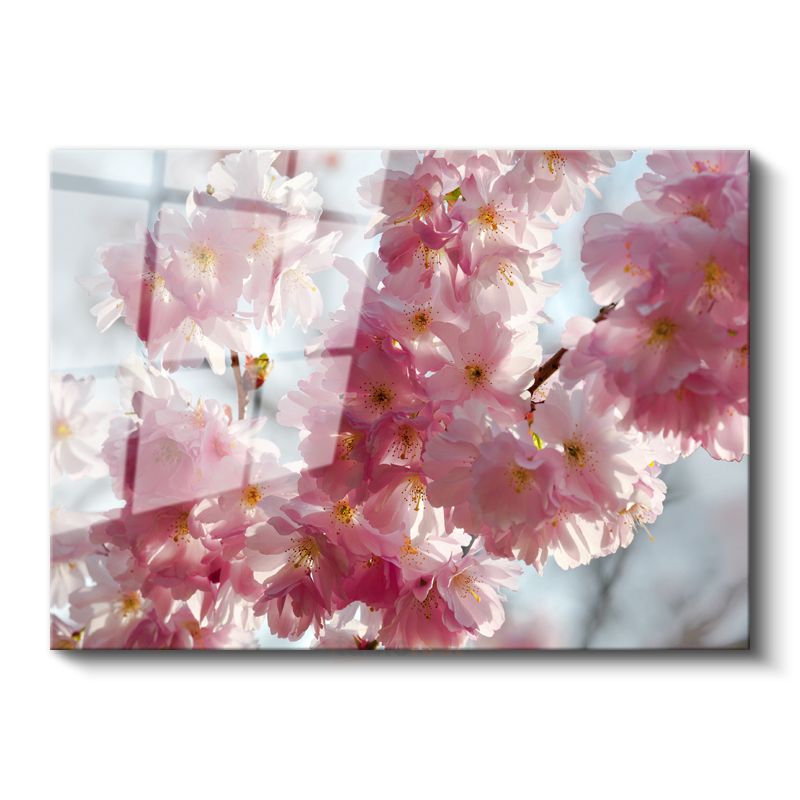Kiraz Çiçekleri - Bahar Dalında Yoğun Çiçekler Cam Tablo