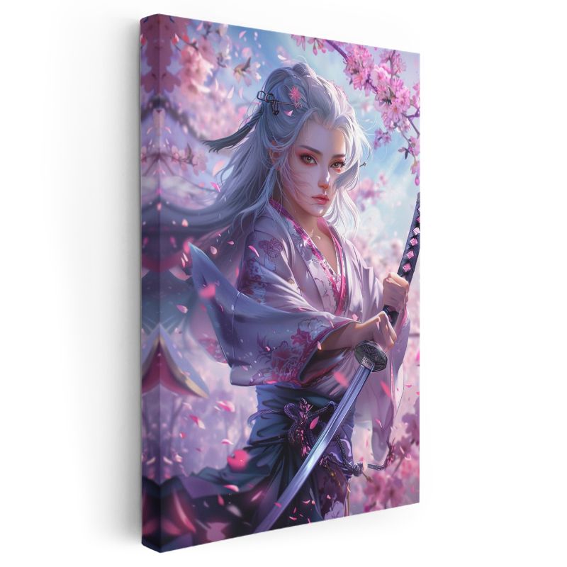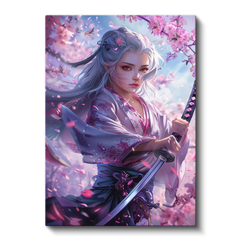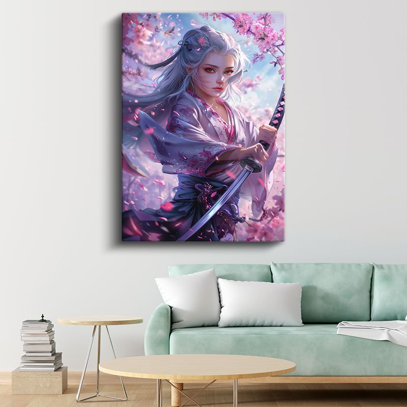 Kiraz Çiçekleri - Beyaz Saçlı Samuray Anime Kanvas Tablo