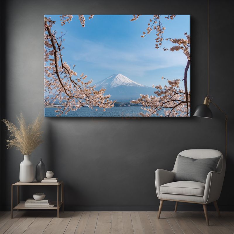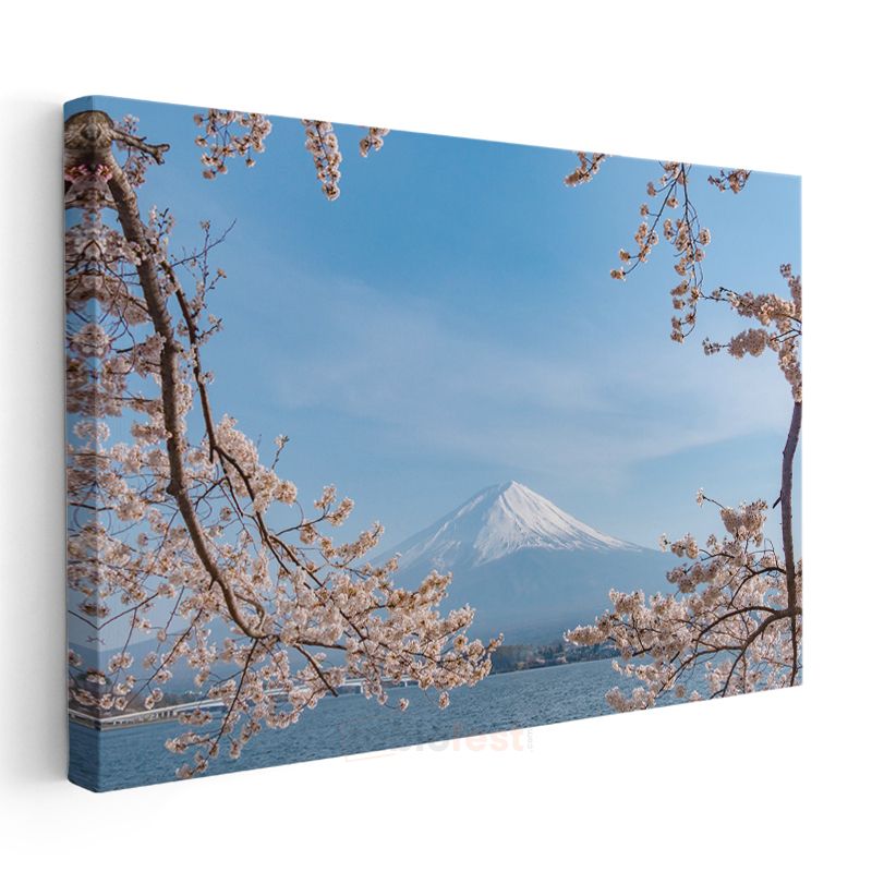 Kiraz Çiçekleri - Fuji Dağı'nın Bahar Manzarası Kanvas Tablo