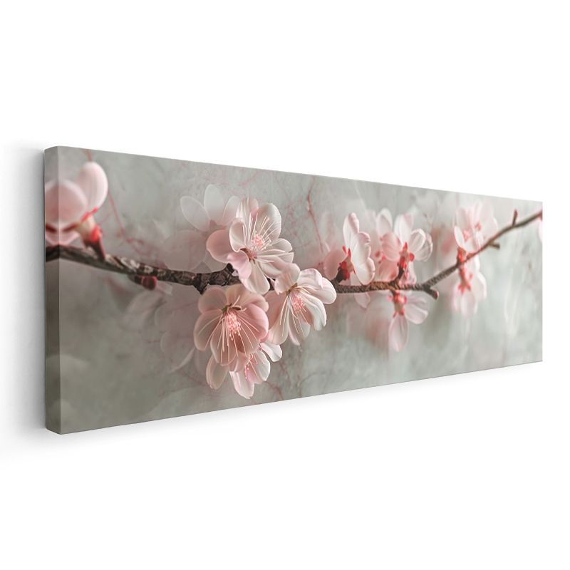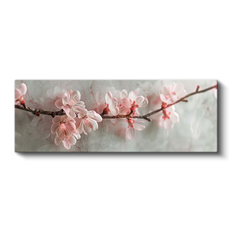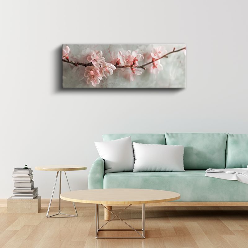 Kiraz Çiçekleri - Gri Zeminde Zarif Pembe Bahar Dalları Kanvas Tablo