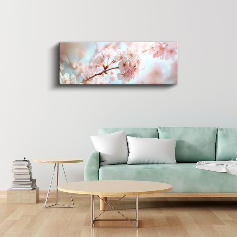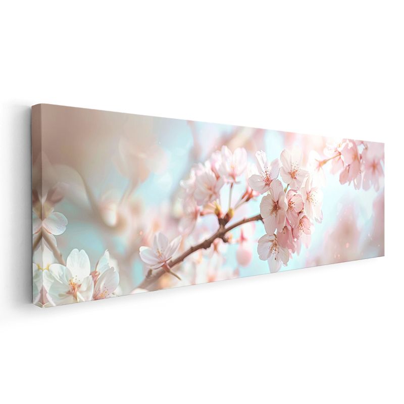 Kiraz Çiçekleri - Pastel Tonlarda Bahar Dalı Kanvas Tablo