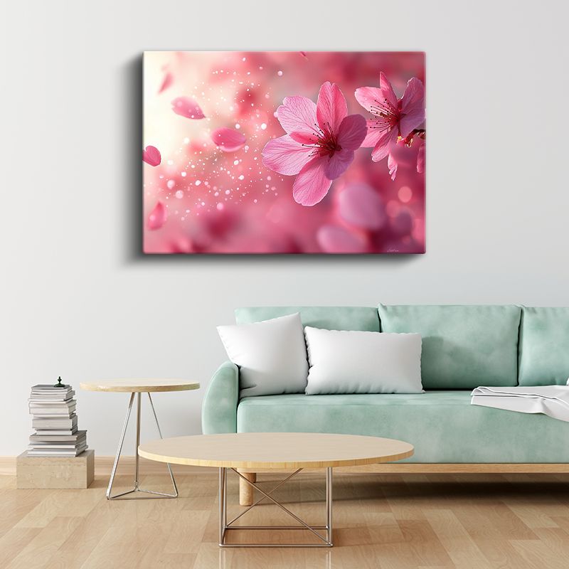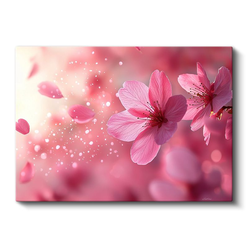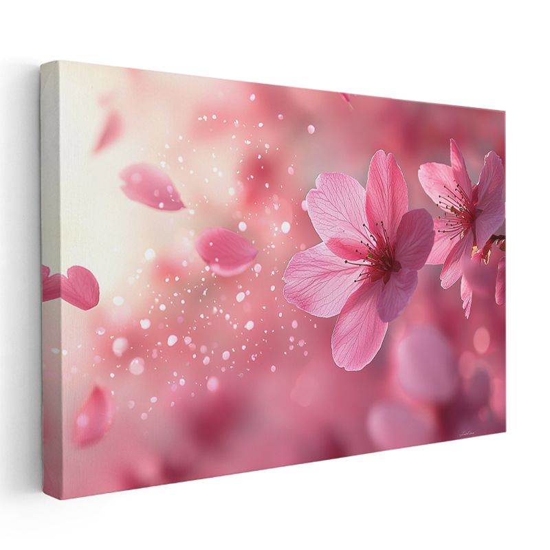 Kiraz Çiçekleri - Pembe Işıltılı Bahar Esintisi Kanvas Tablo