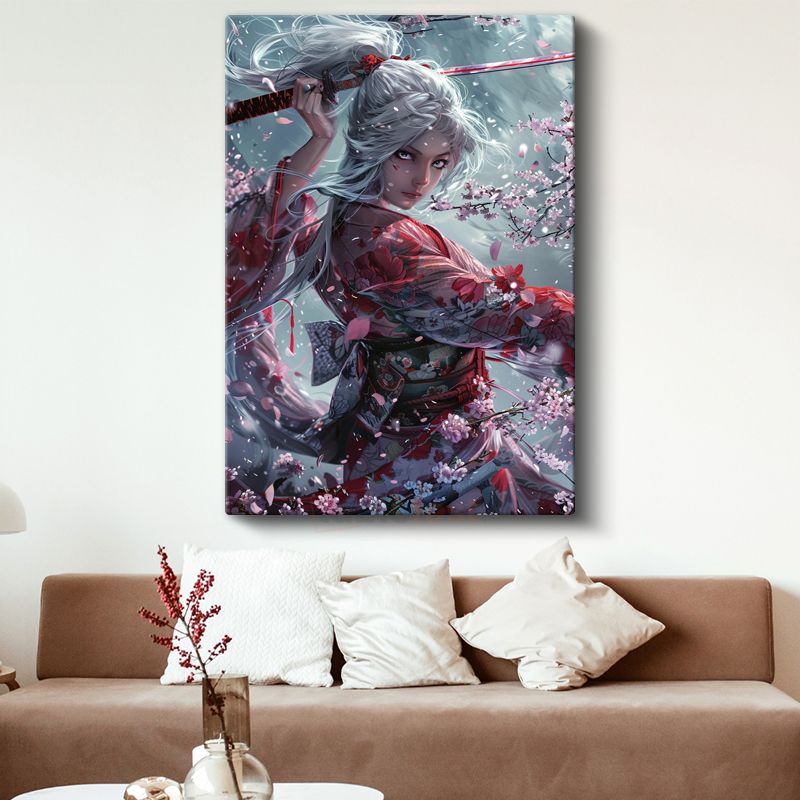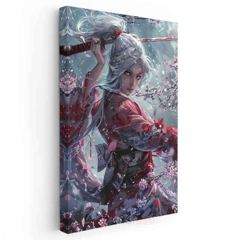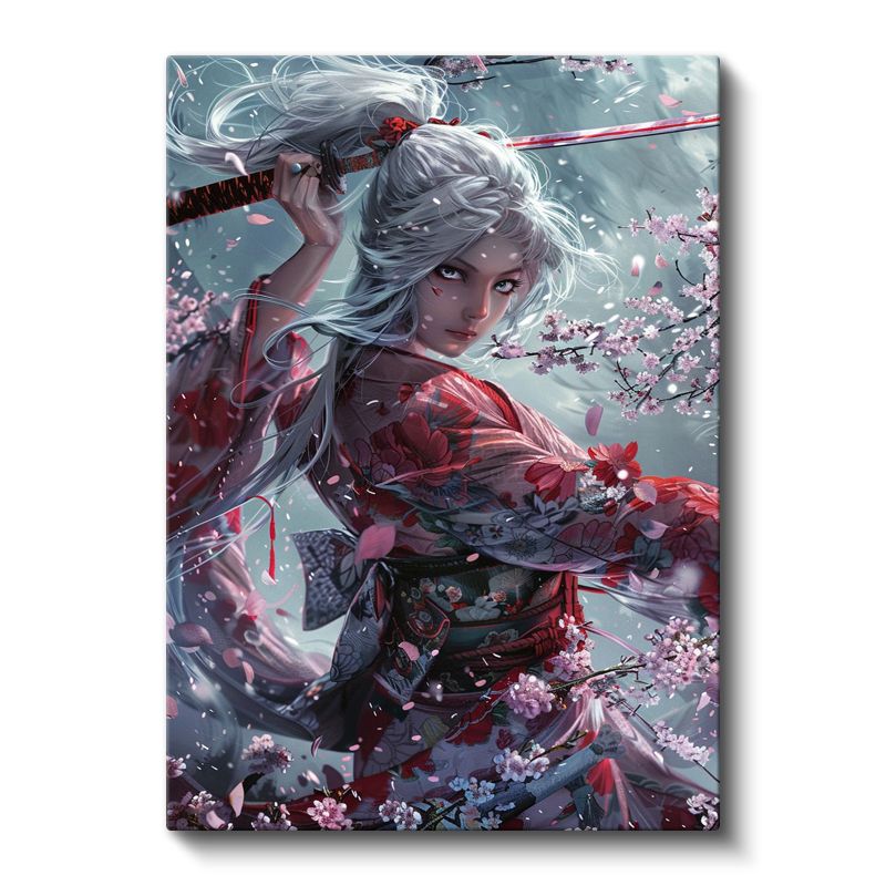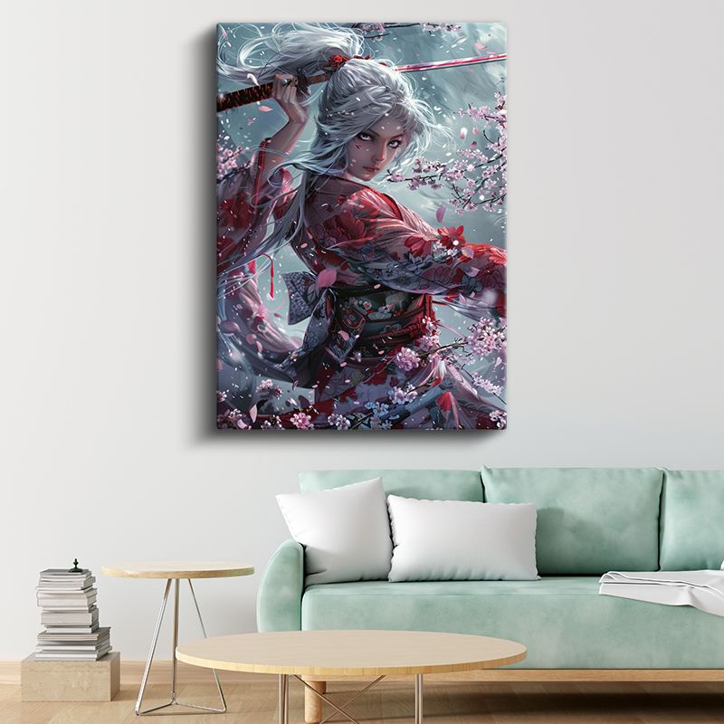 Kiraz Çiçekleri - Samuray Kız Portresi Anime Kanvas Tablo