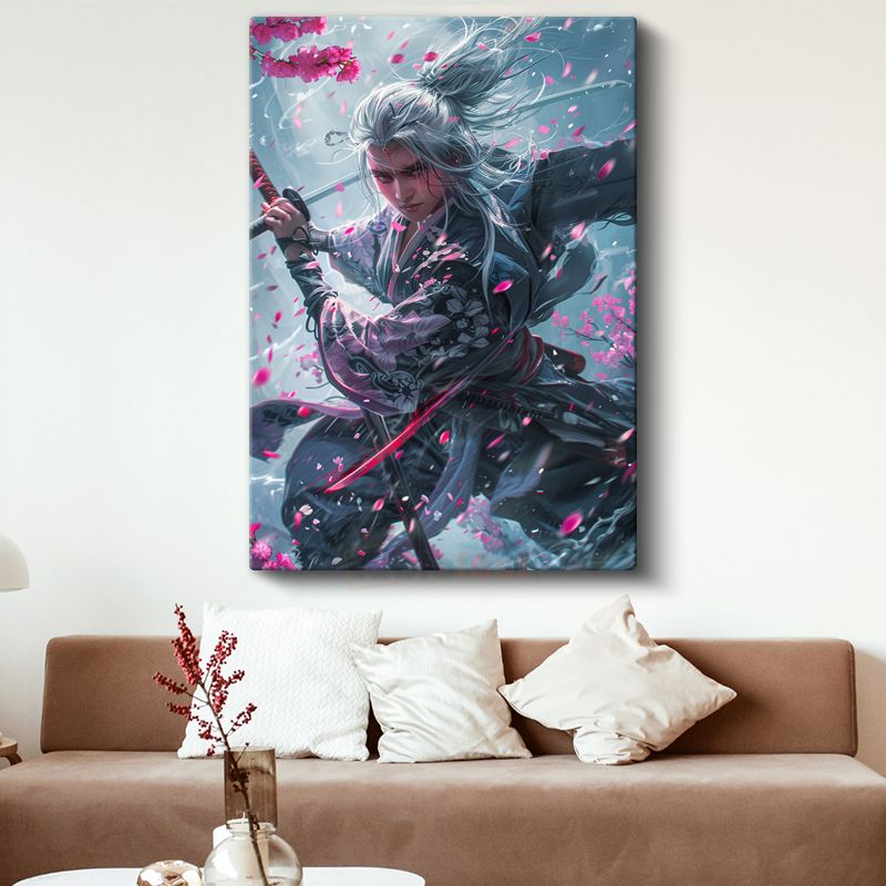 Kiraz Çiçekleri - Samuray Savaşçı Anime Kanvas Tablo