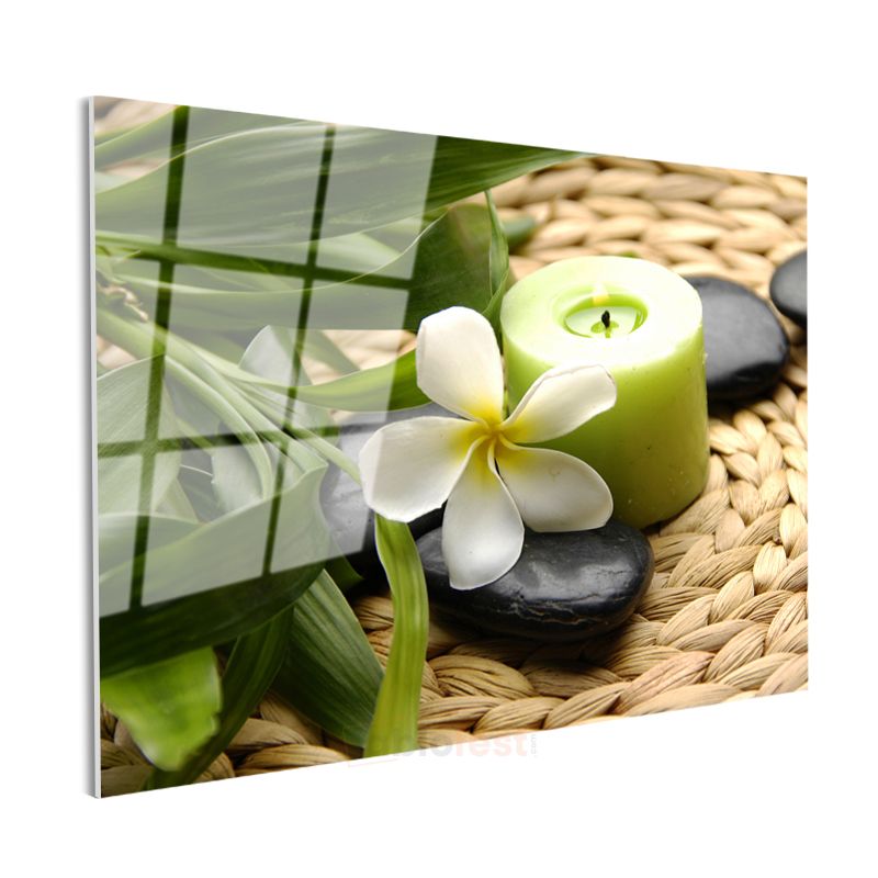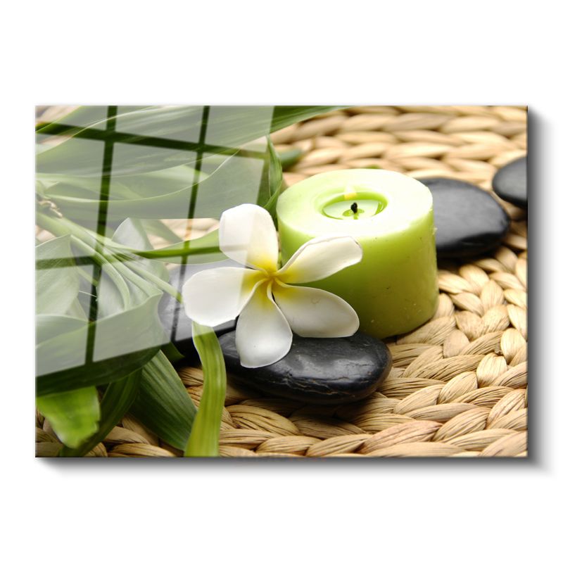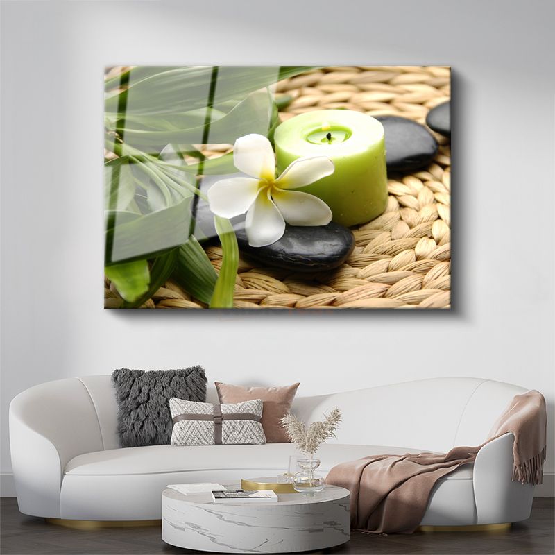 Kiraz Çiçekleri - Siyah Taşlar Üzerinde Yansıma Cam Tablo