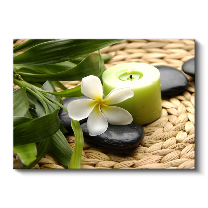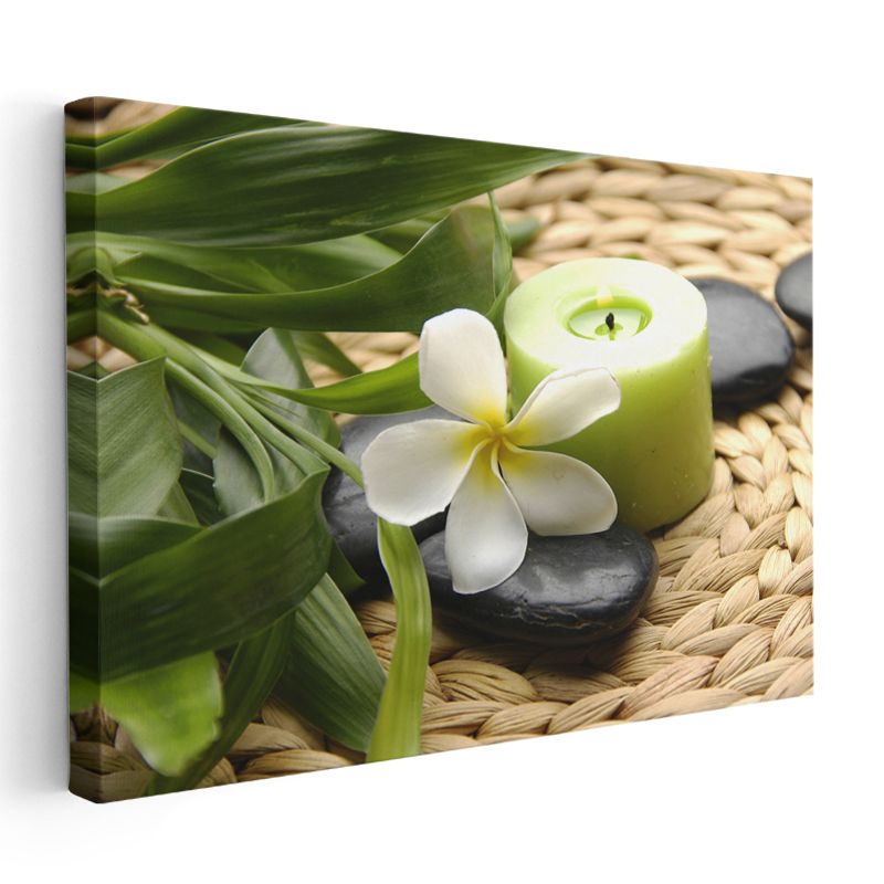 Kiraz Çiçekleri - Siyah Taşlar Üzerinde Yansıma Kanvas Tablo