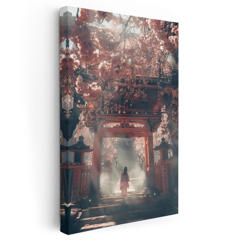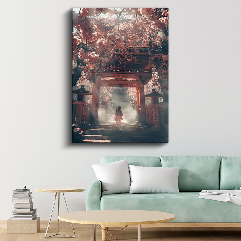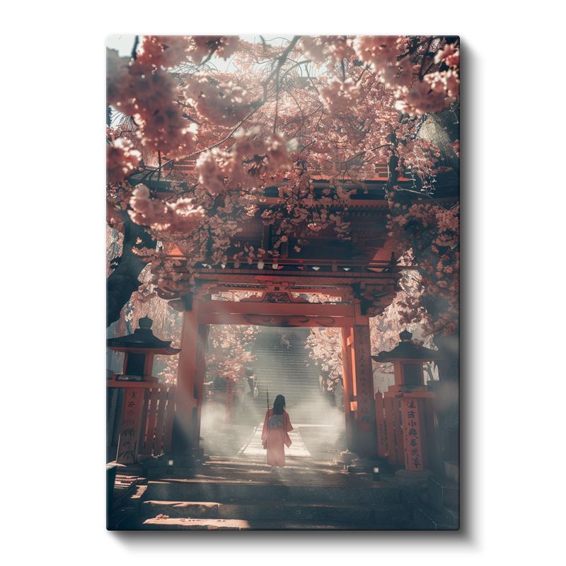 Kiraz Çiçekleri Tapınağı - Mistik Geçit Anime Kanvas Tablo
