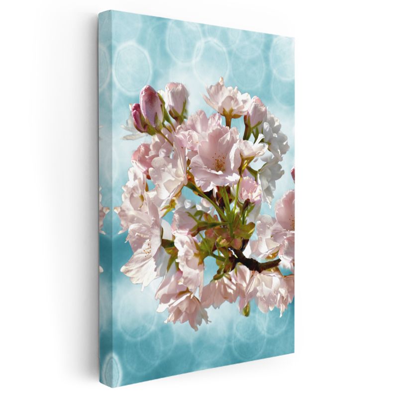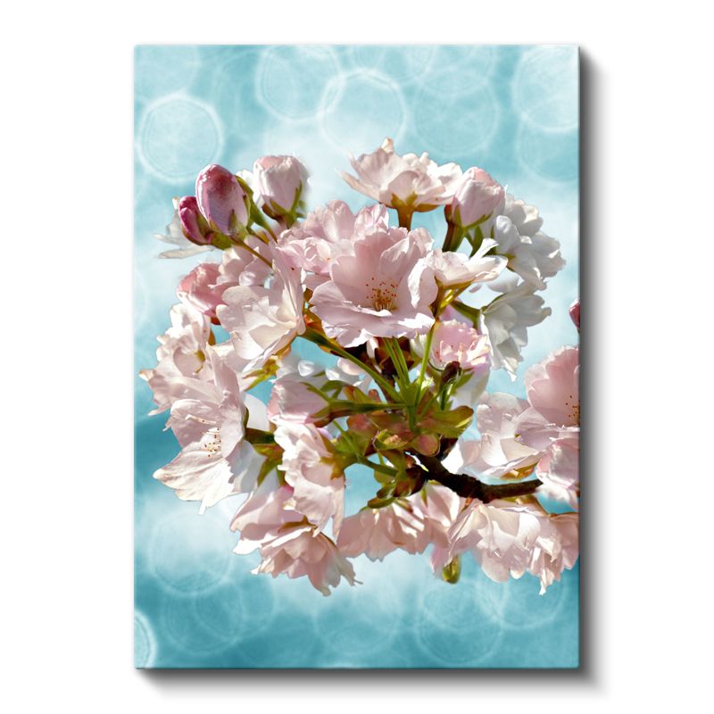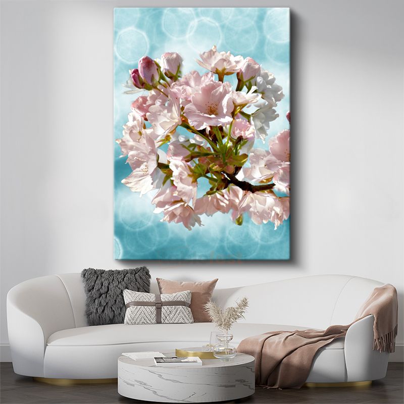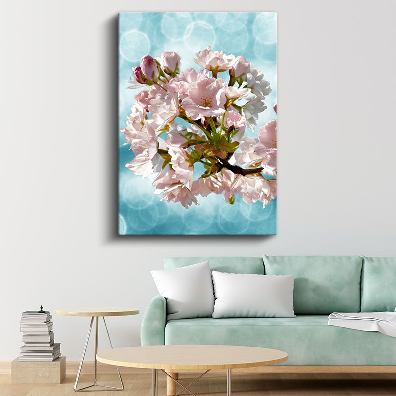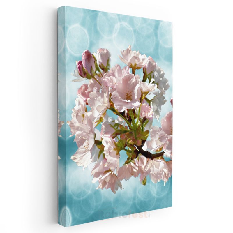 Kiraz Çiçekleri - Turkuaz Fonda Bahar Dalı Kanvas Tablo