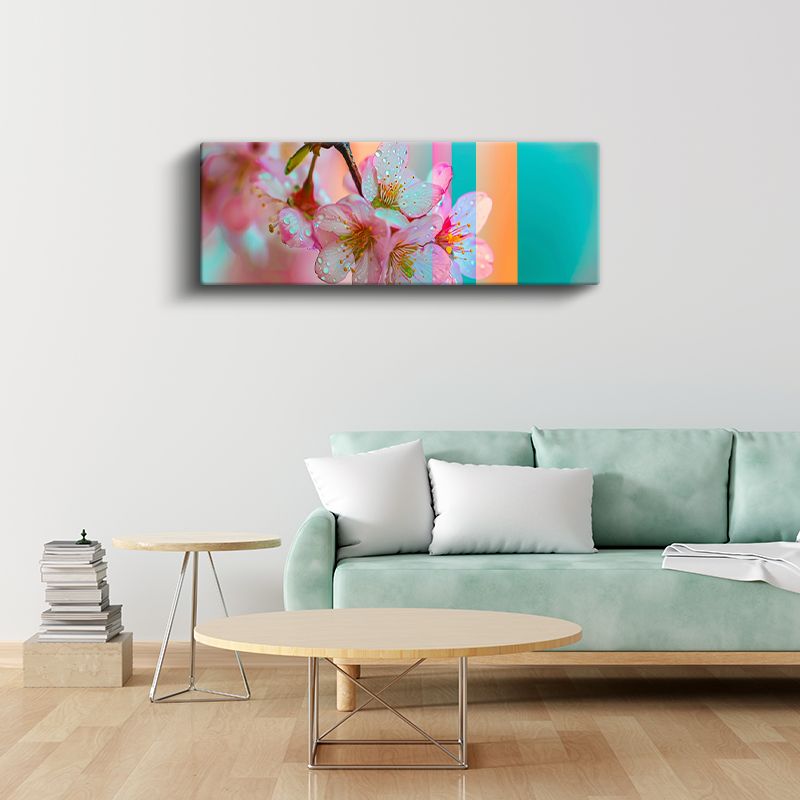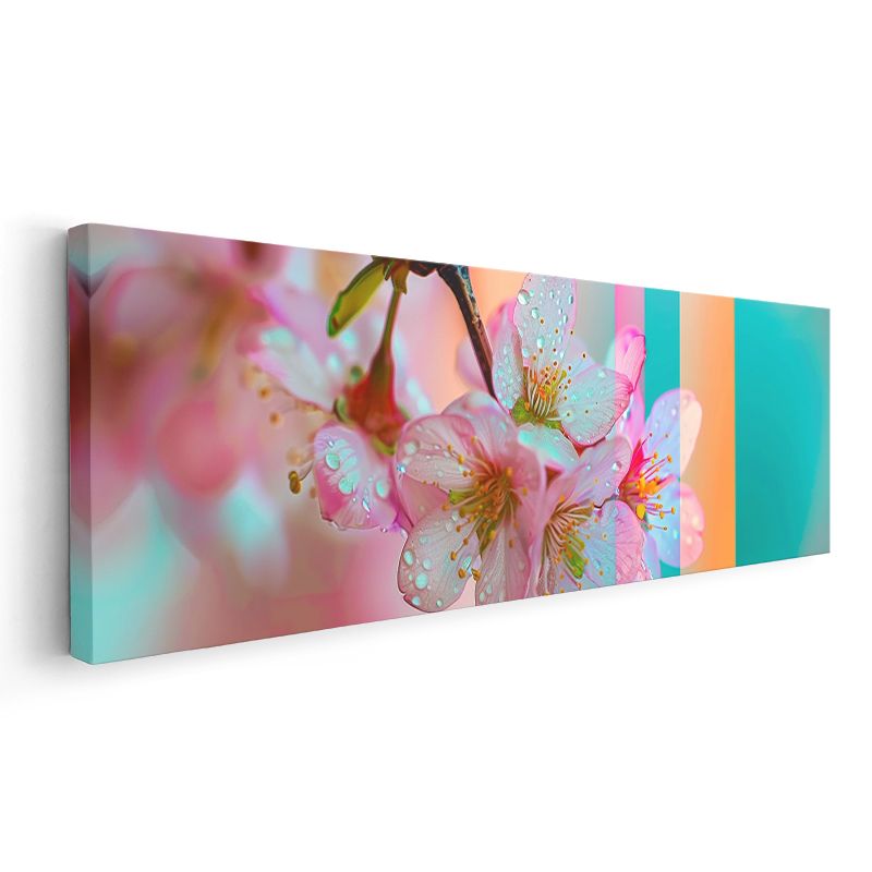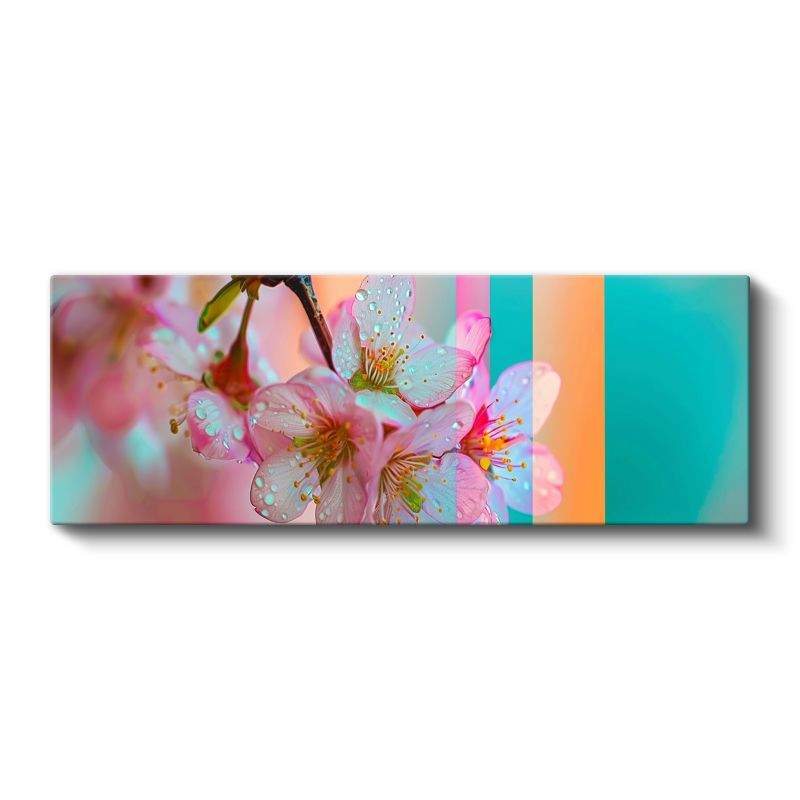 Kiraz Çiçekleri - Turkuaz Şeritli Modern Tasarım Kanvas Tablo