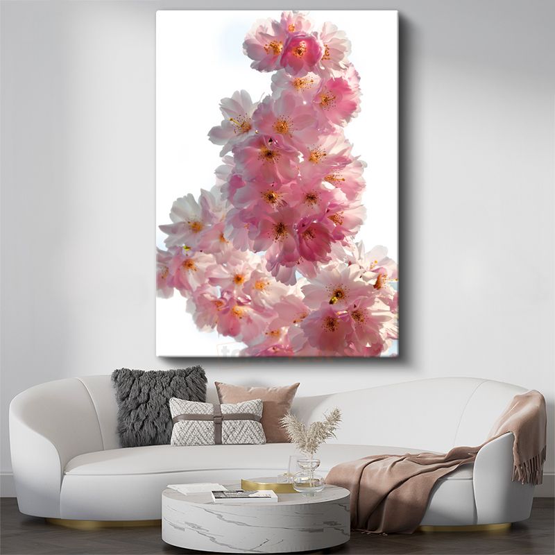 Kiraz Çiçekleri - Zarif Pembe Çiçek Demeti Kanvas Tablo