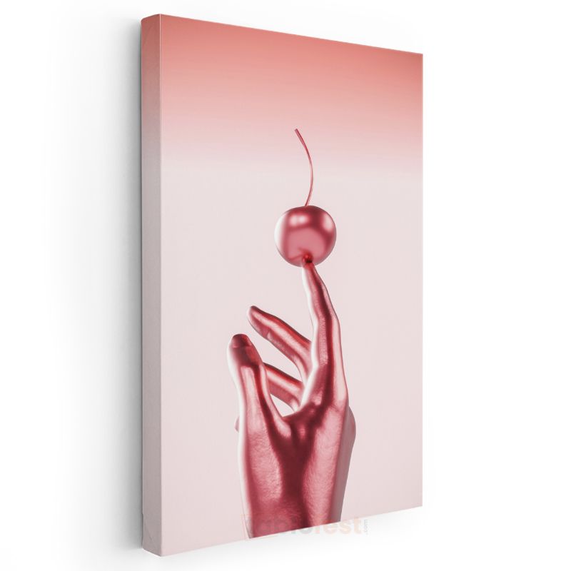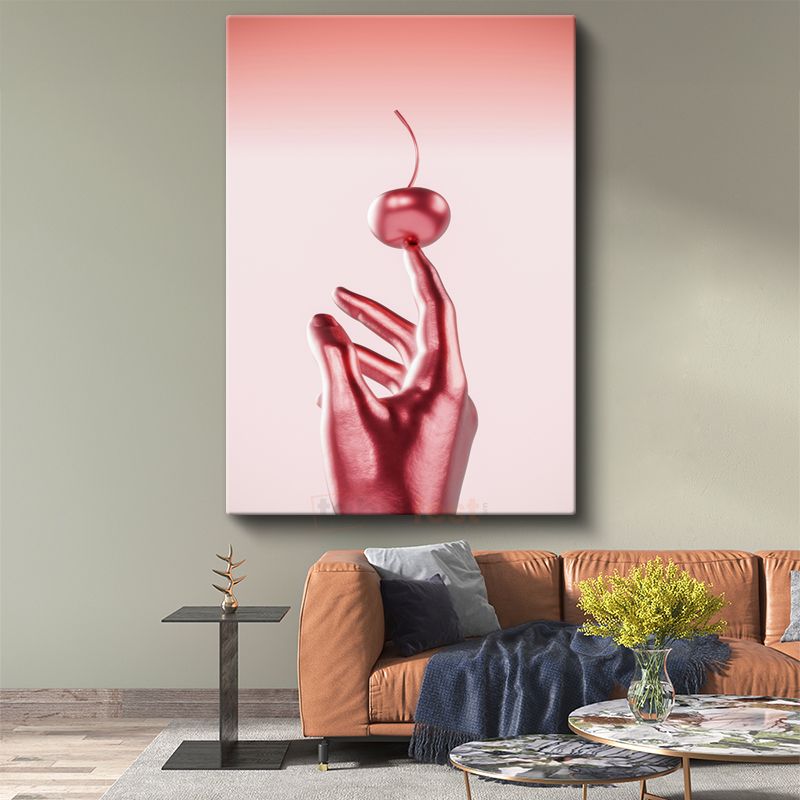 Kiraz Dokunuş - Metalik El Minimalist Kompozisyon Kanvas Tablo