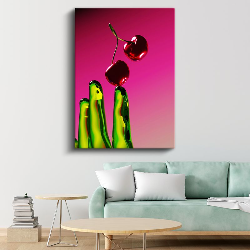 Kiraz Soyutlaması - Canlı Kontrast Kompozisyonu Kanvas Tablo