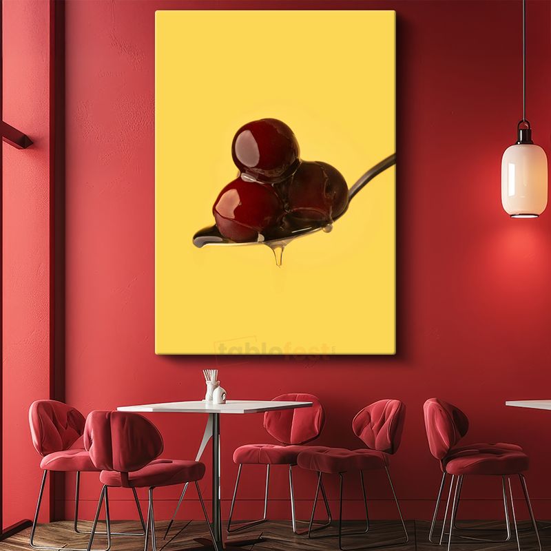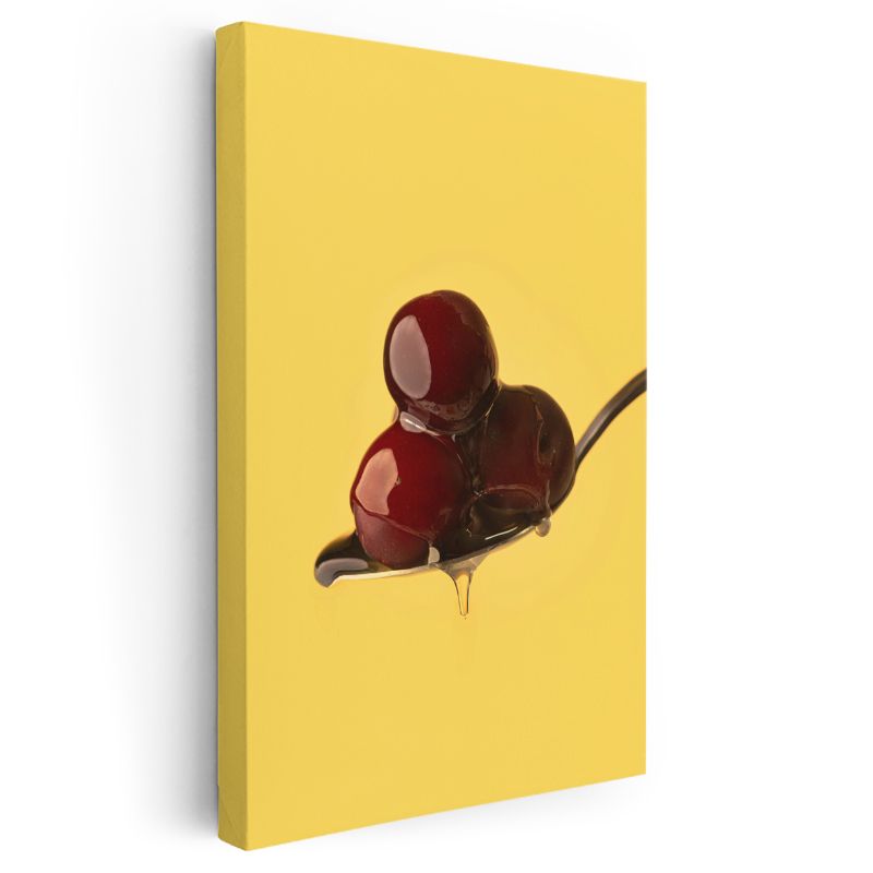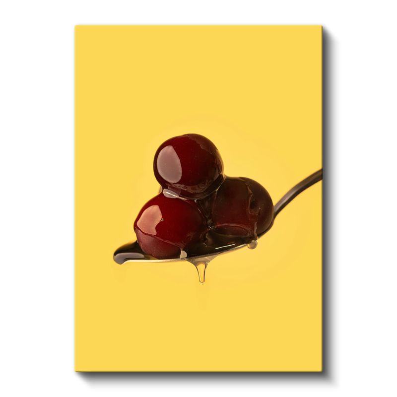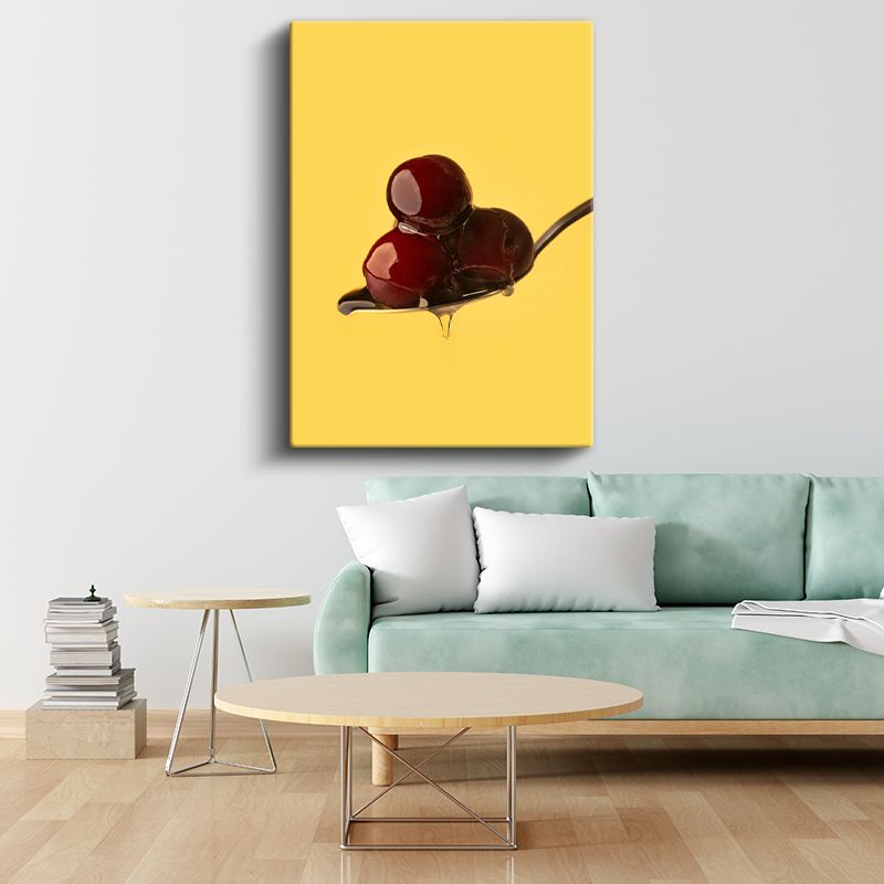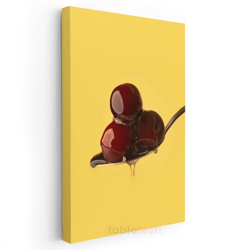Kiraz Üçlüsü - Kaşıkta Tatlı Meyve Kanvas Tablo