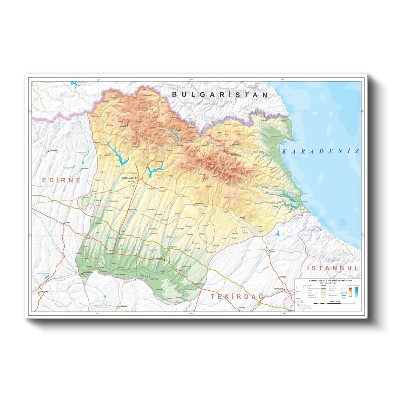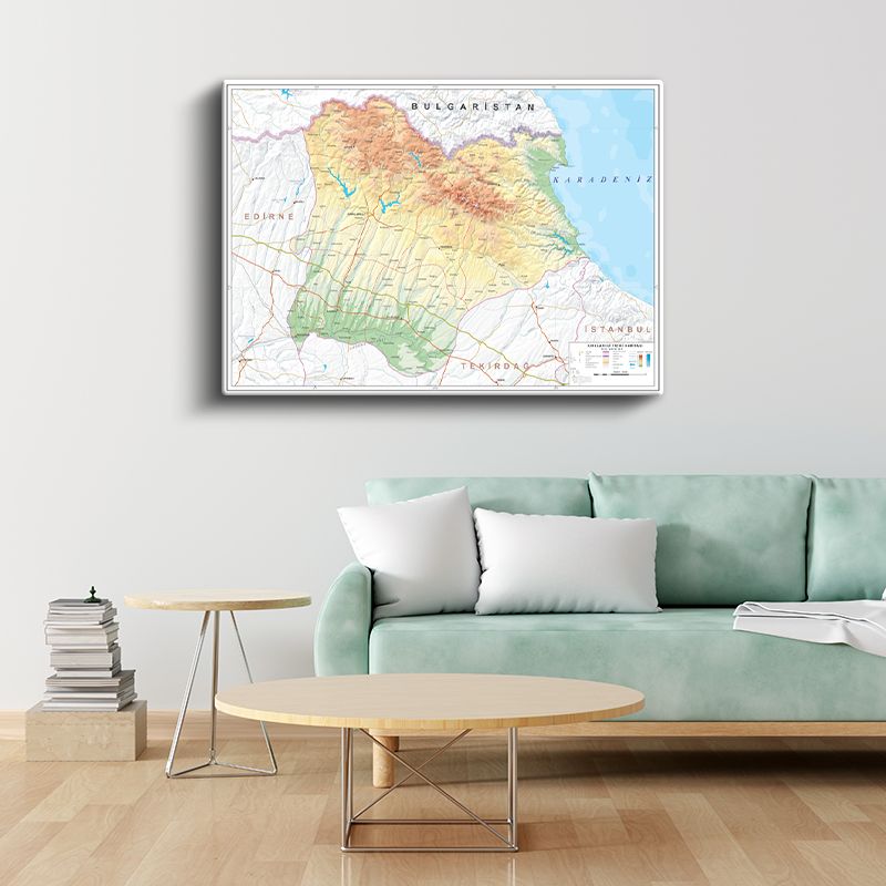 Kırklareli - Fiziki Haritası Kanvas Tablo