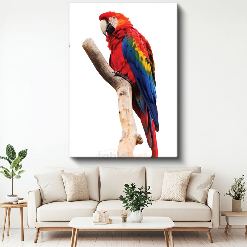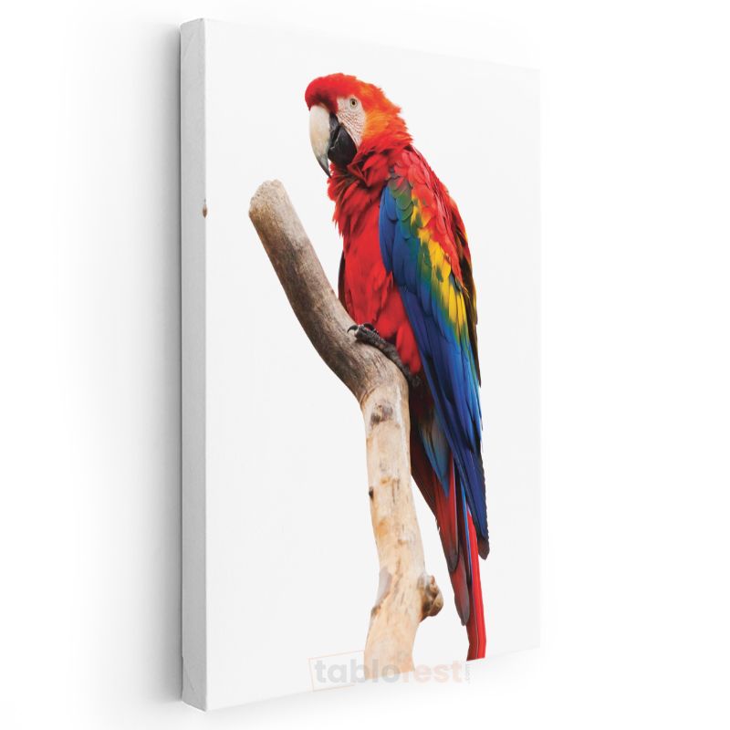 Kırmızı Ara Papağanı - Renkli Tüylü Tropikal Kuş Kanvas Tablo