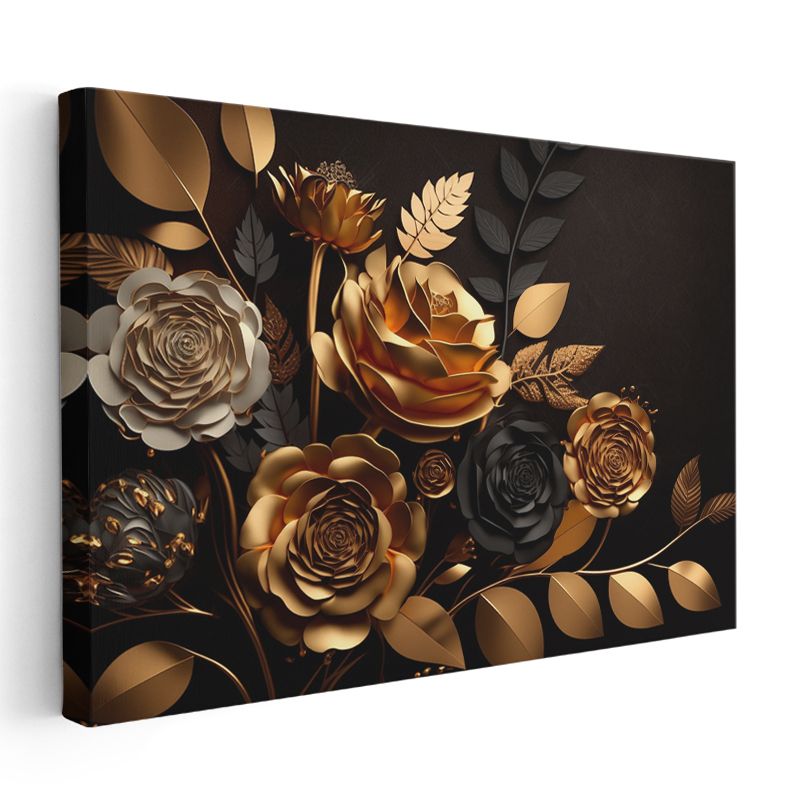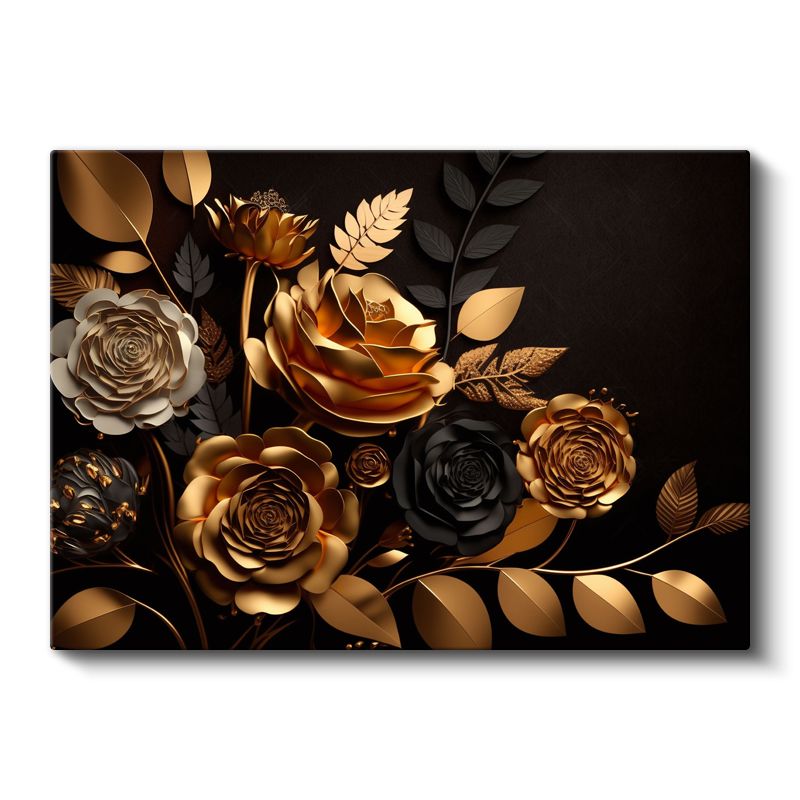 Kırmızı Beyaz Çiçek - Altın Detaylı Dramatik Çiçek Portresi Kanvas Tablo
