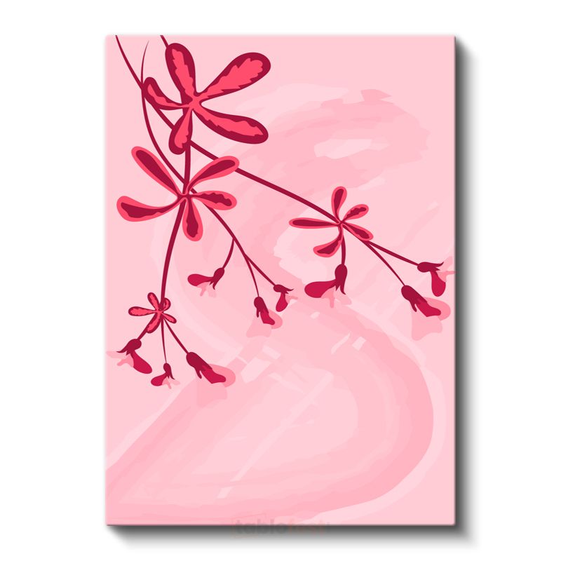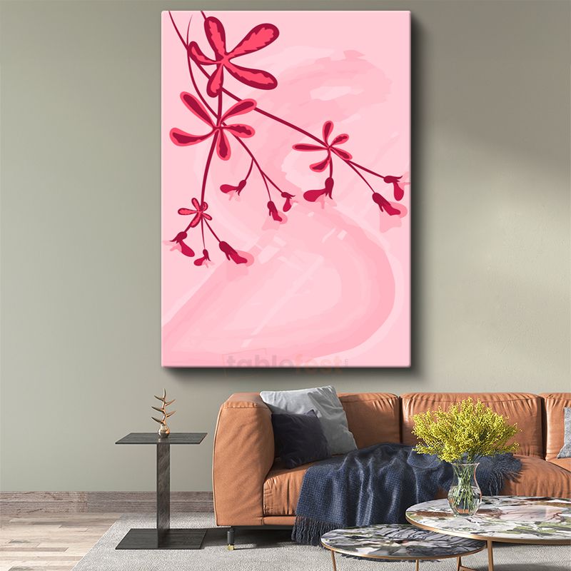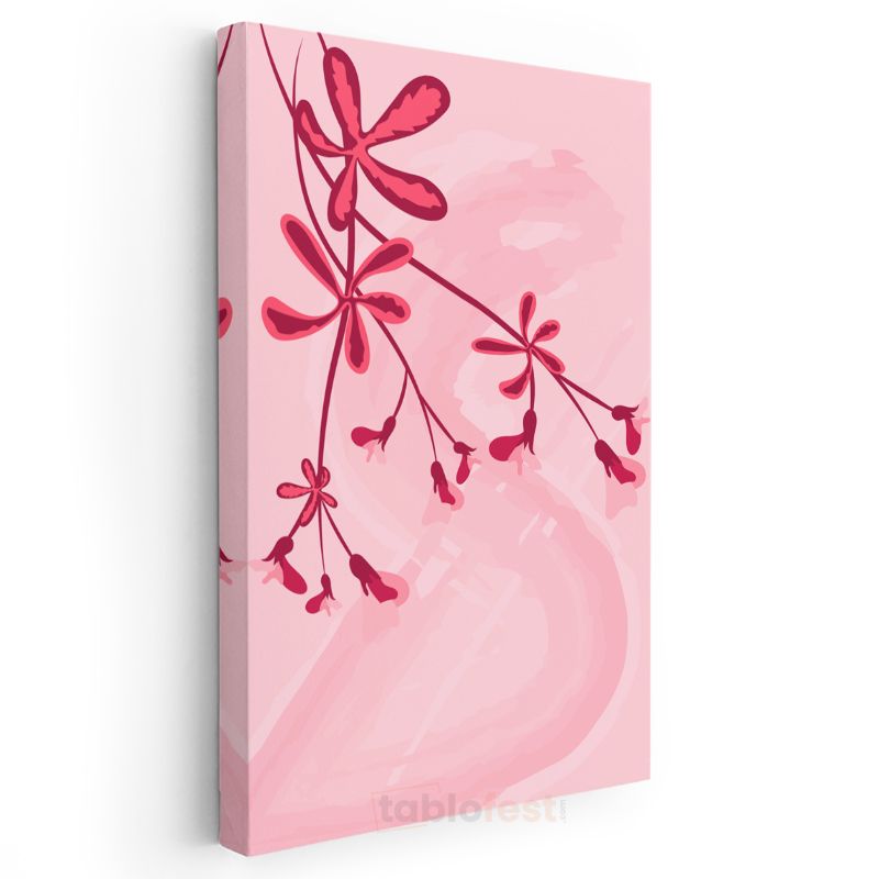 Kırmızı Çiçek Dalları - Pembe Tonlarında Narin Bitki Desenleri Kanvas Tablo