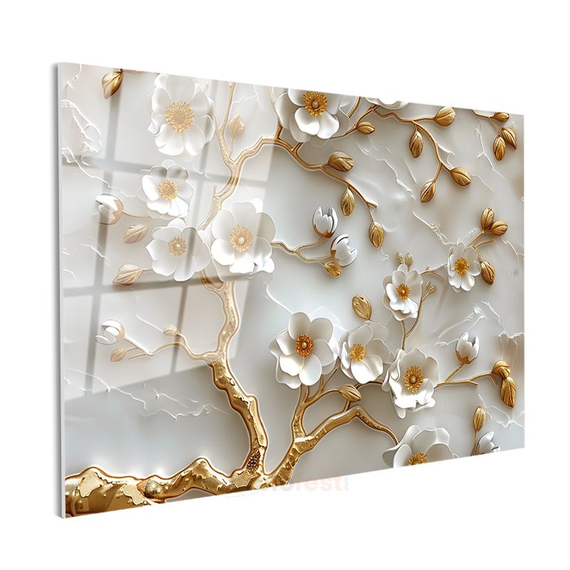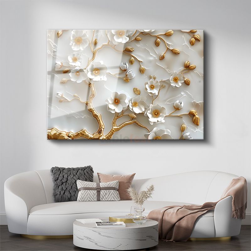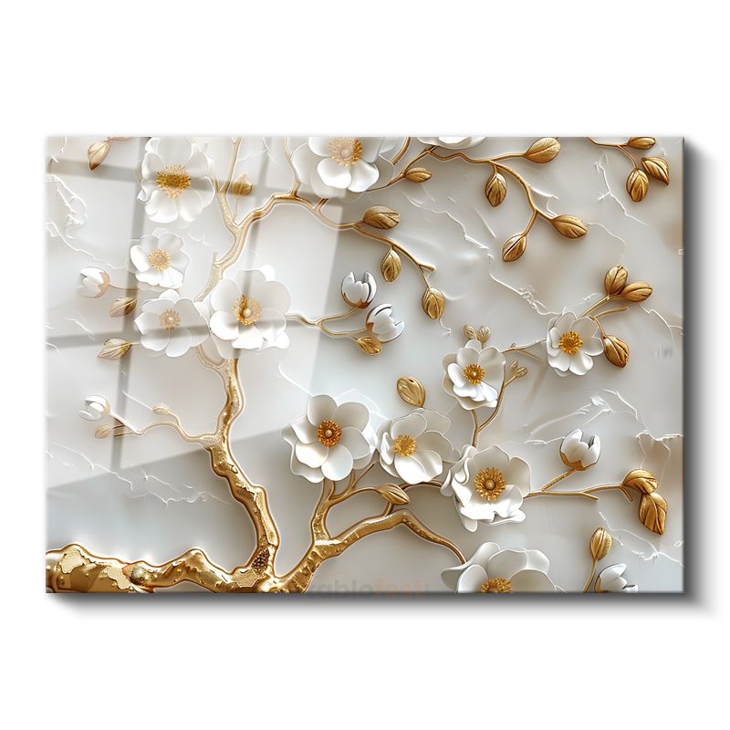 Kırmızı Çiçekler - Koyu Fonda Dramatik Çiçek Portresi Cam Tablo