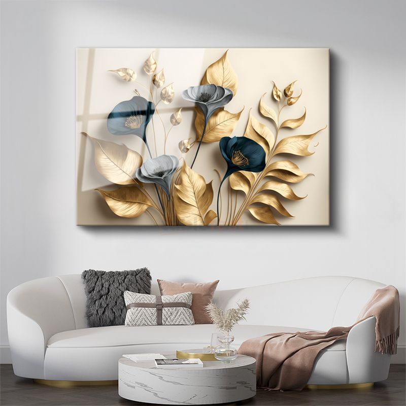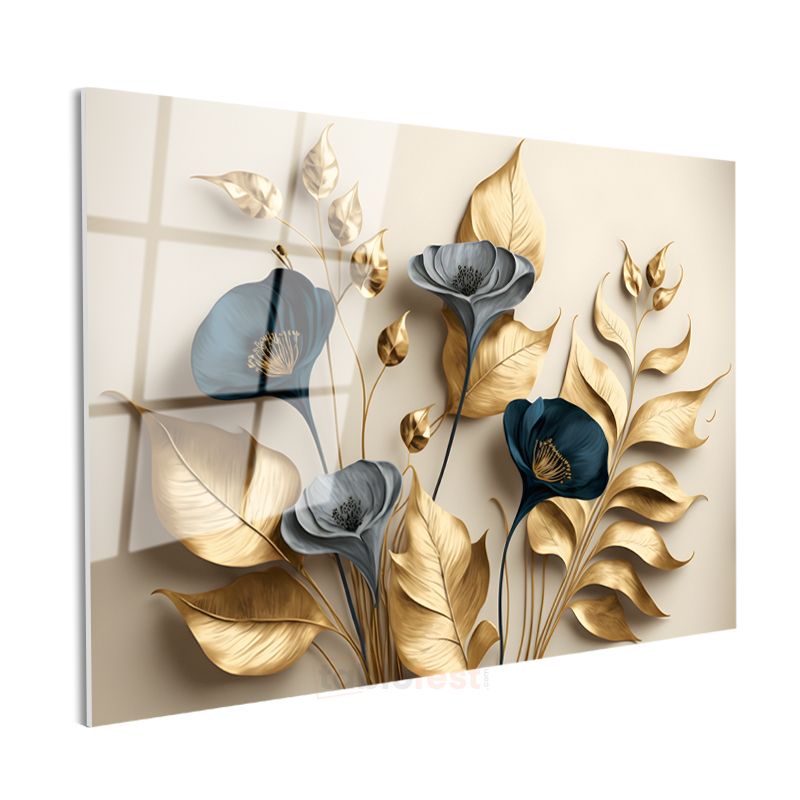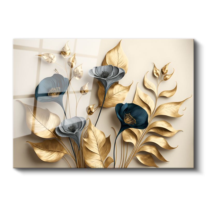 Kırmızı Çiçekli Dal - Sisli Manzarada Japon Tarzı Çiçek Dalı Cam Tablo