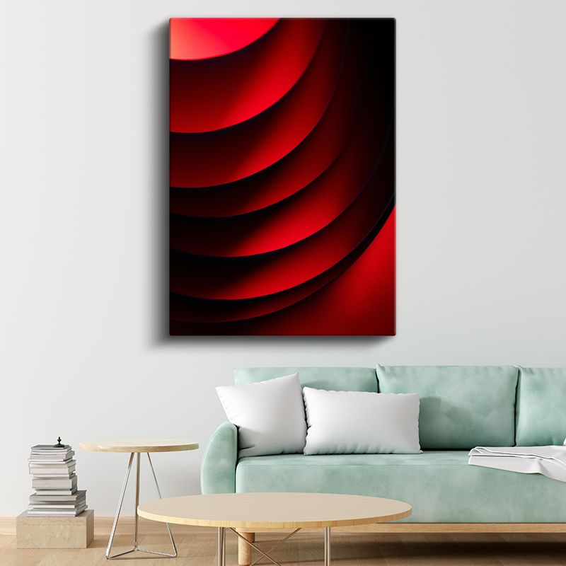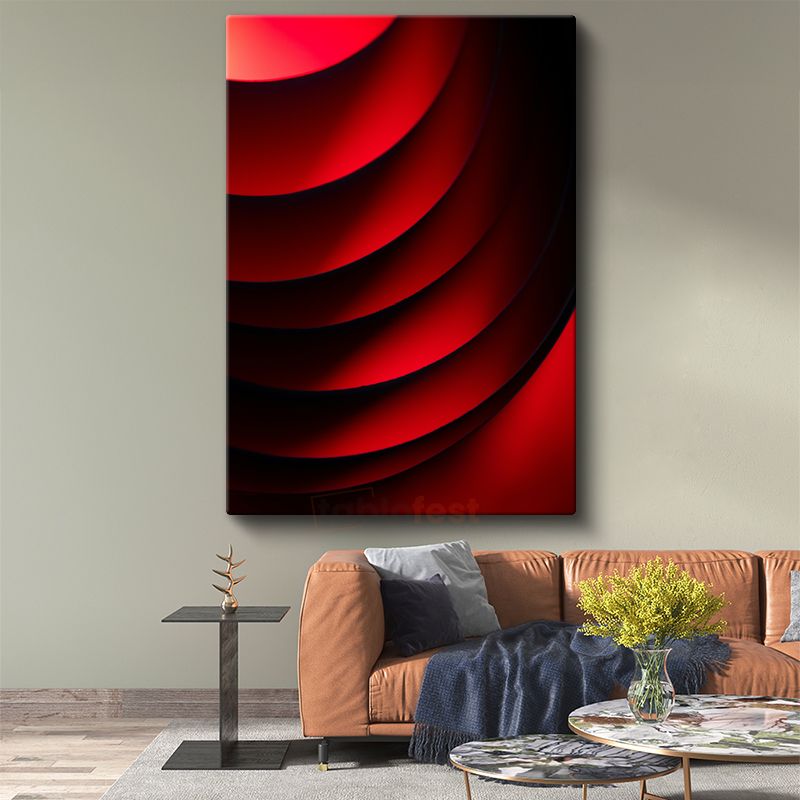 Kırmızı Dalgalar - Katmanlı Minimalist Çizgiler Kanvas Tablo