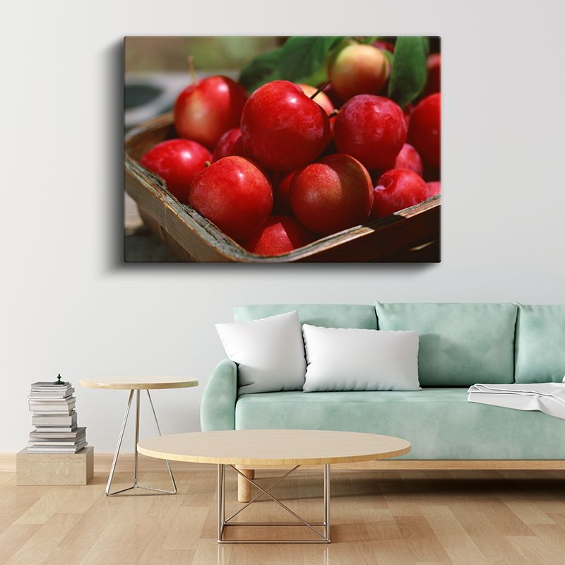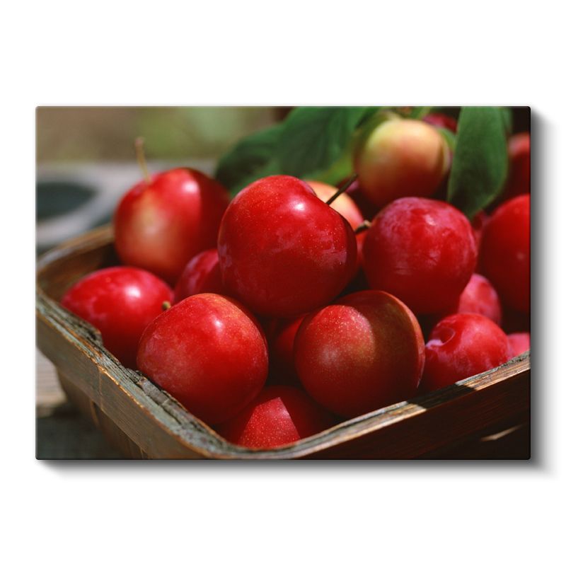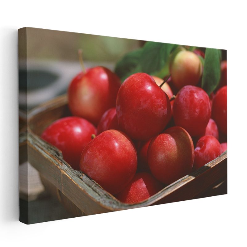 Kırmızı Elmalar - Ahşap Sepette Taze Meyveler Kanvas Tablo
