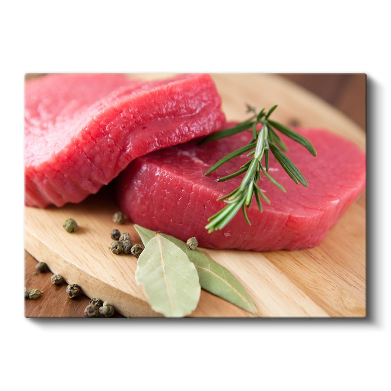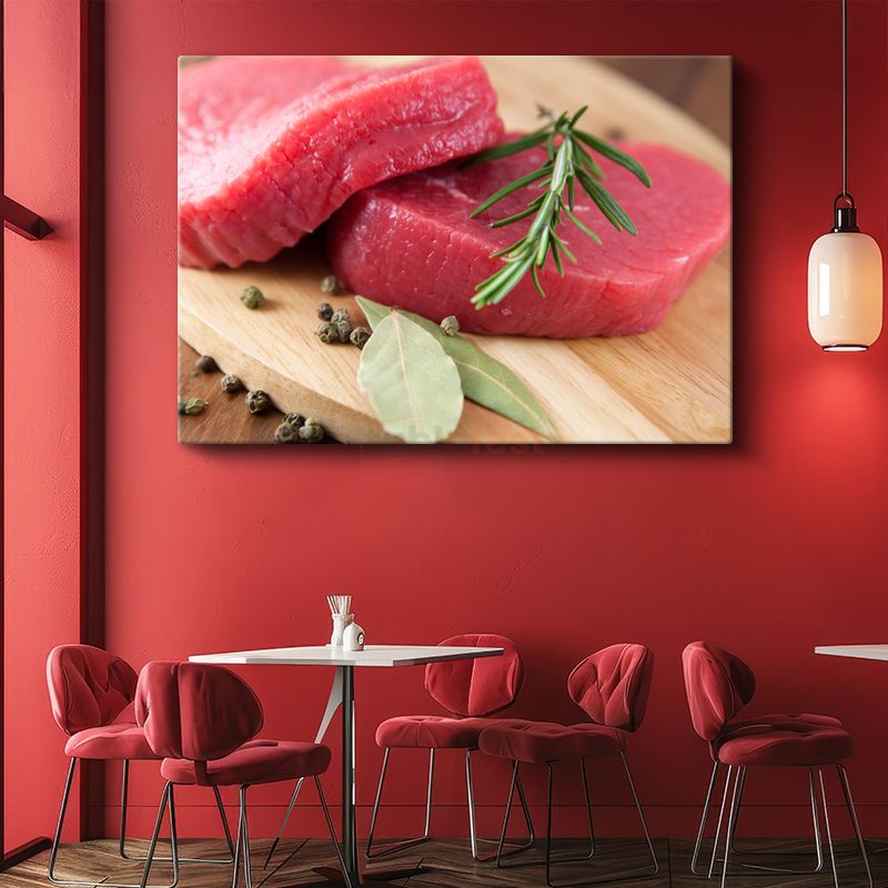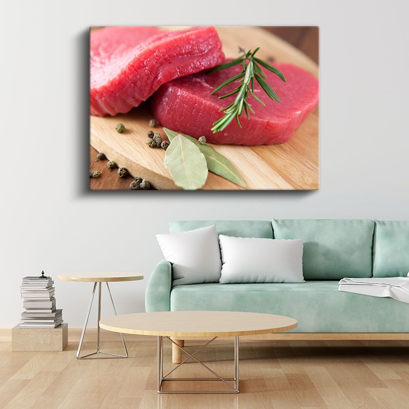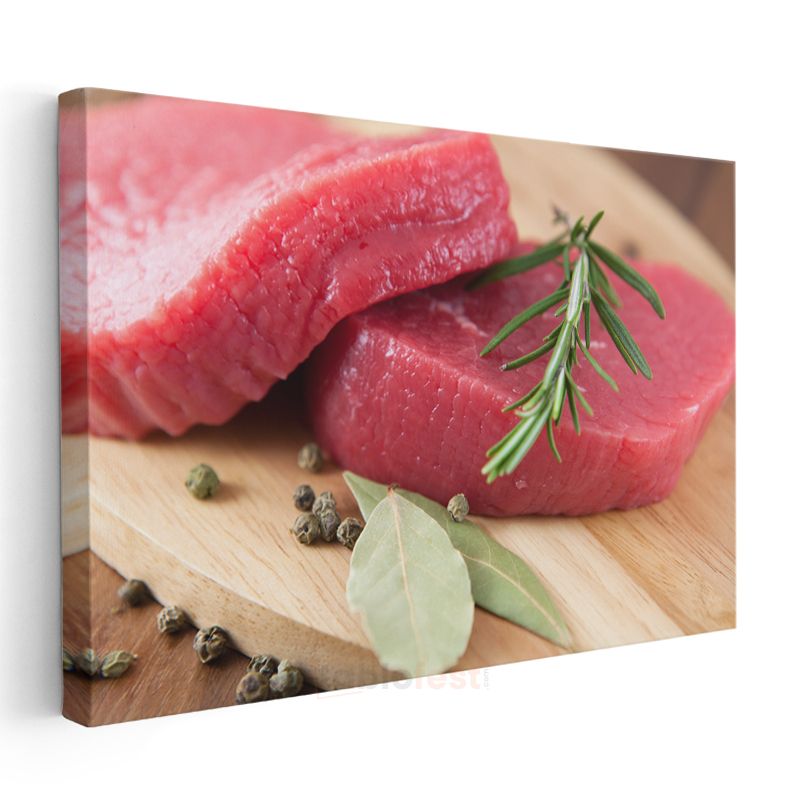 Kırmızı Et - Biberiye ve Baharatlarla Süslenmiş Çiğ Biftek Kanvas Tablo