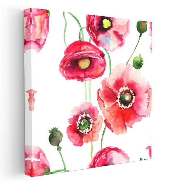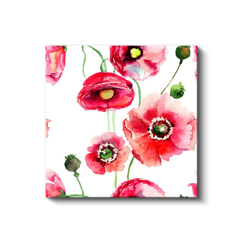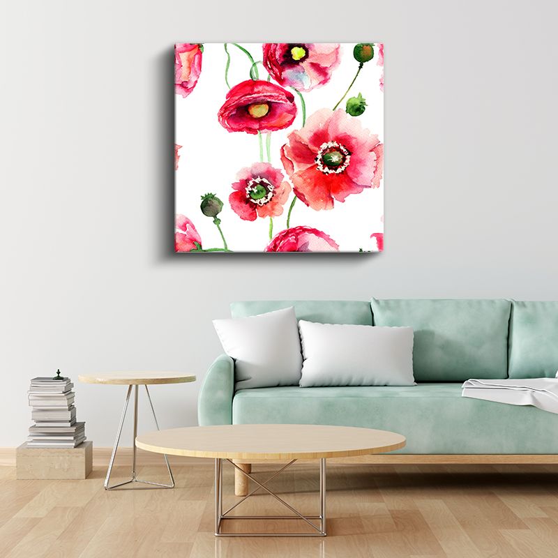 Kırmızı Gelincikler - Beyaz Fonda Canlı Gelincik Deseni Kanvas Tablo