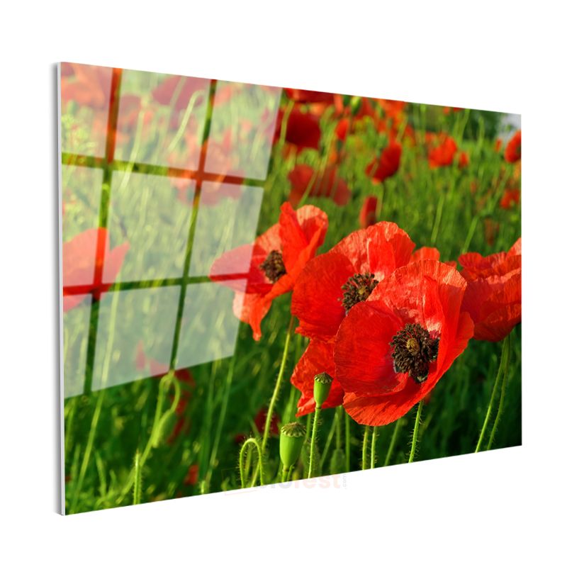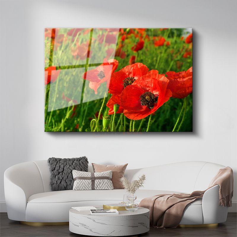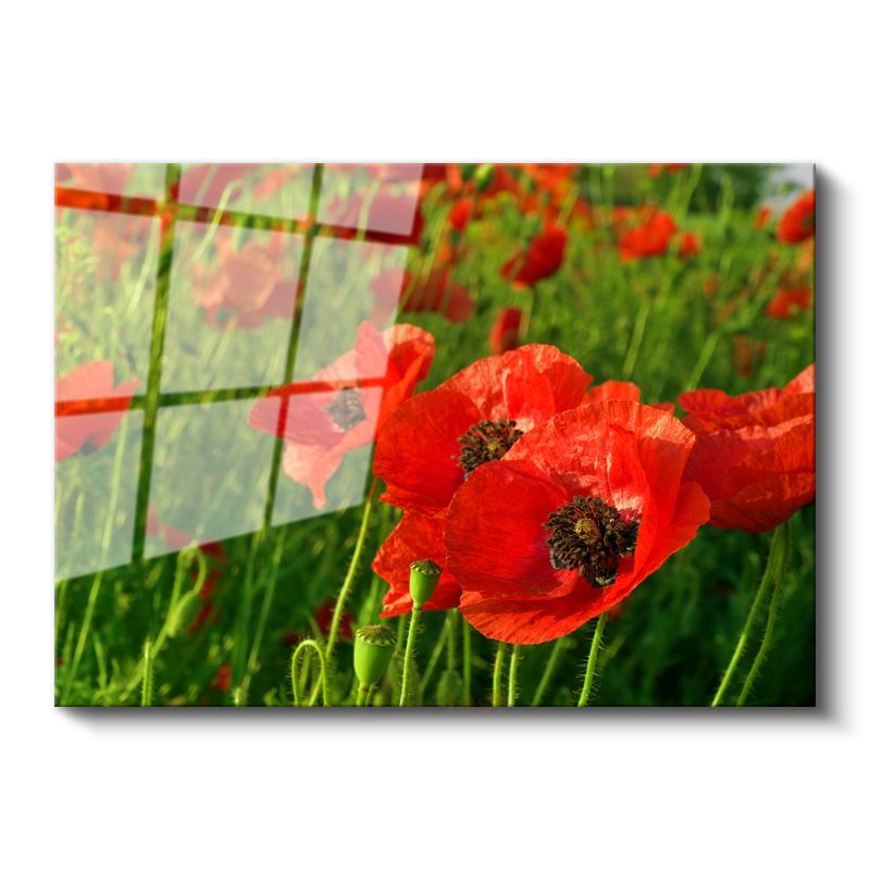 Kırmızı Gelincikler - Canlı Renkli Bahar Çayırı Cam Tablo