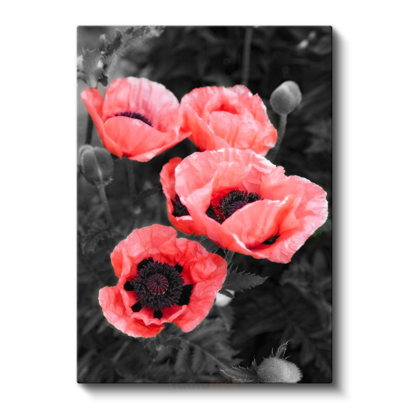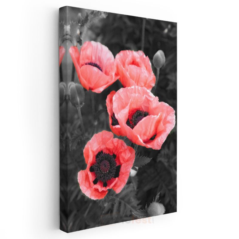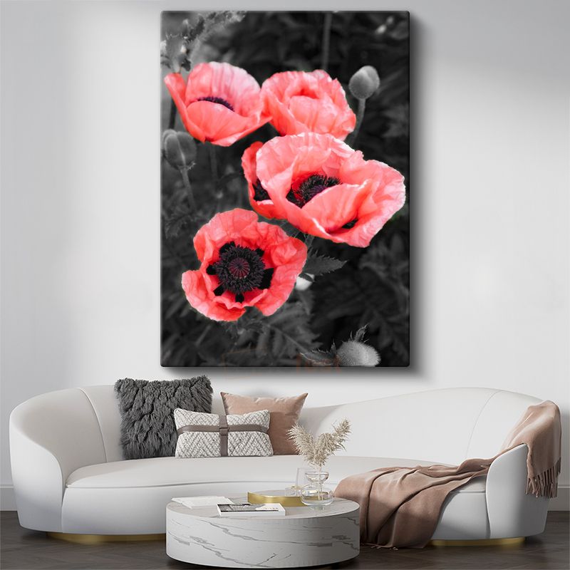 Kırmızı Gelincikler - Siyah Beyaz Fonda Canlı Çiçekler Kanvas Tablo