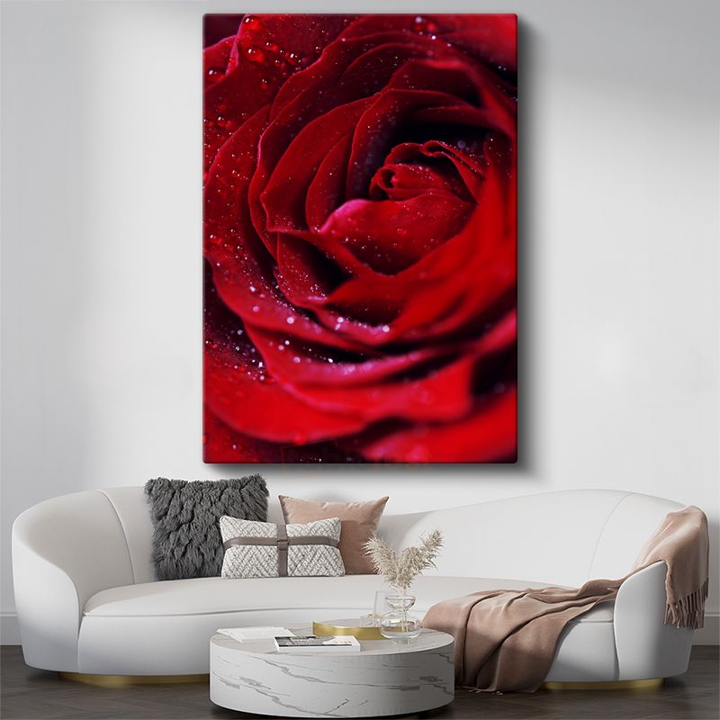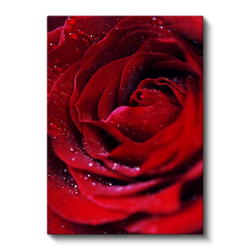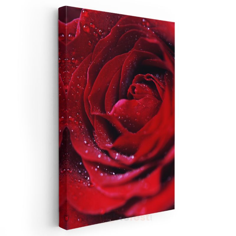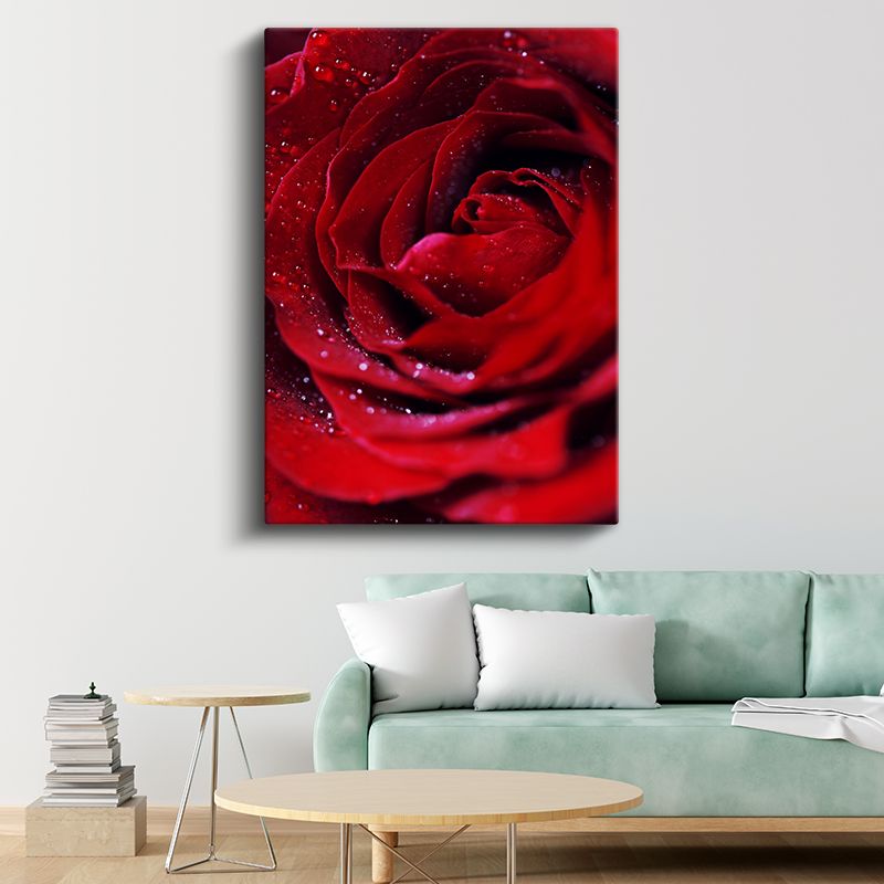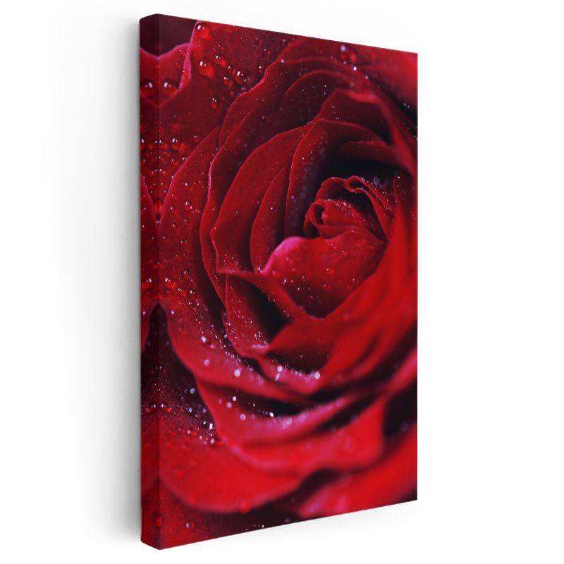 Kırmızı Gül - Çiğ Damlacıklı Kadife Dokulu Kanvas Tablo