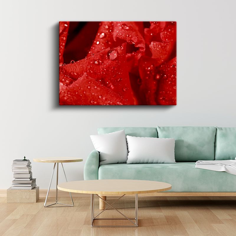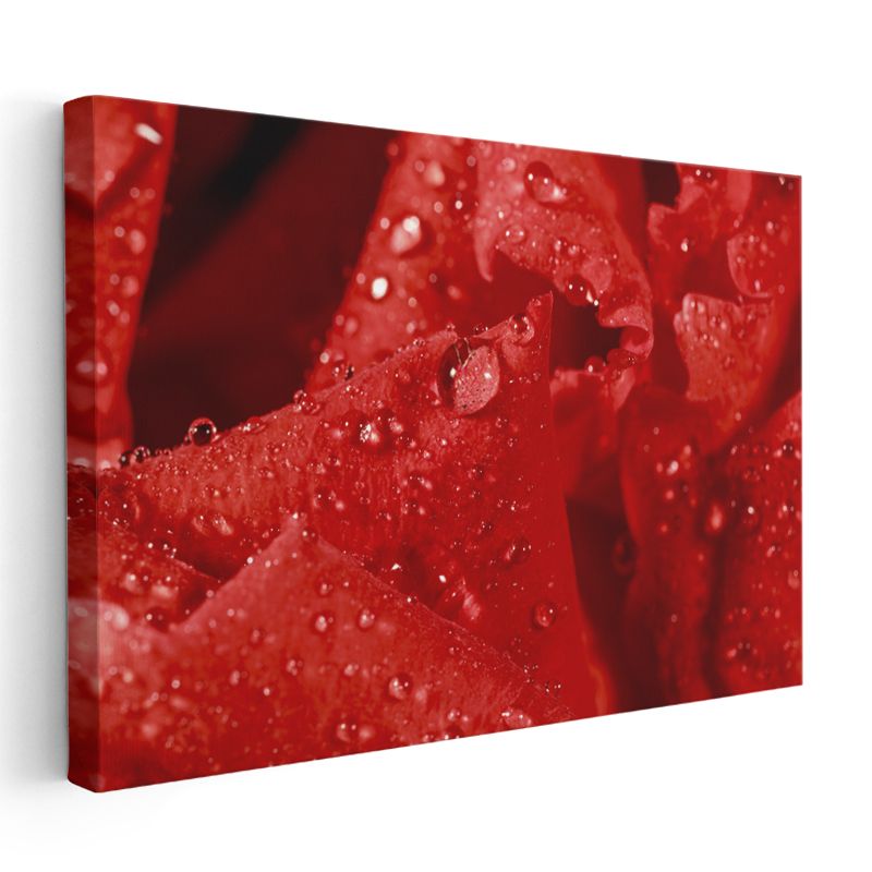 Kırmızı Gül - Çiy Damlacıklı Detay Kanvas Tablo