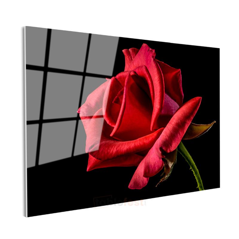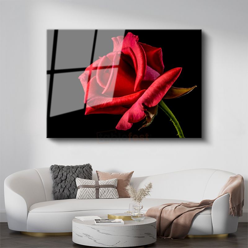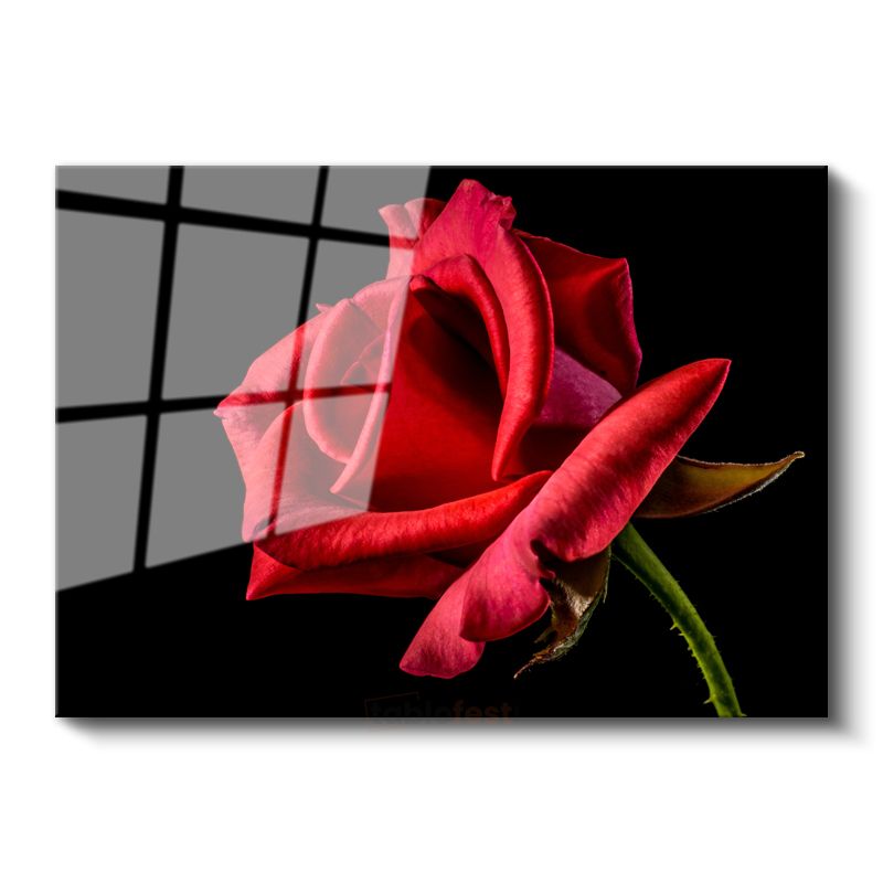 Kırmızı Gül - Kadife Dokulu Çiçek Cam Tablo