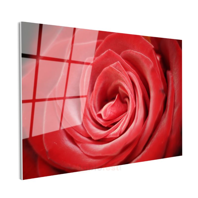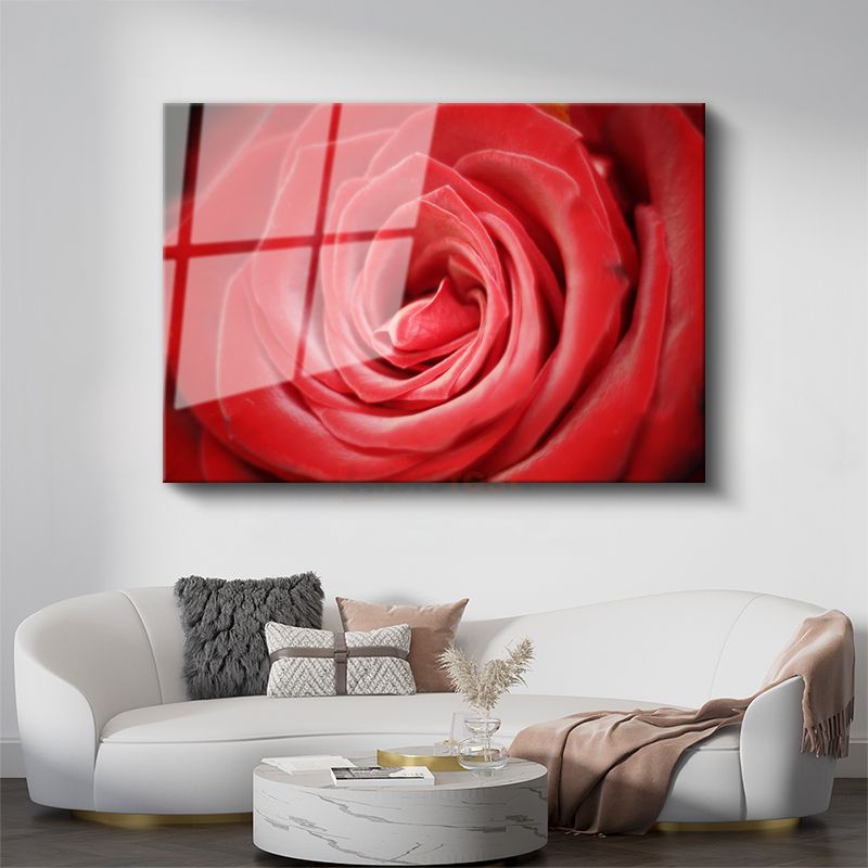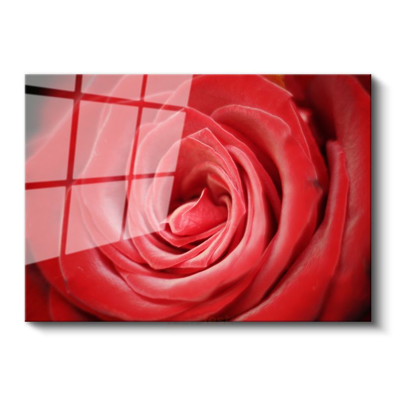 Kırmızı Gül - Makro Çekim Çiçek Portresi Cam Tablo