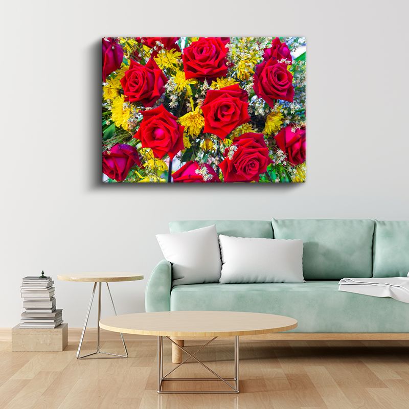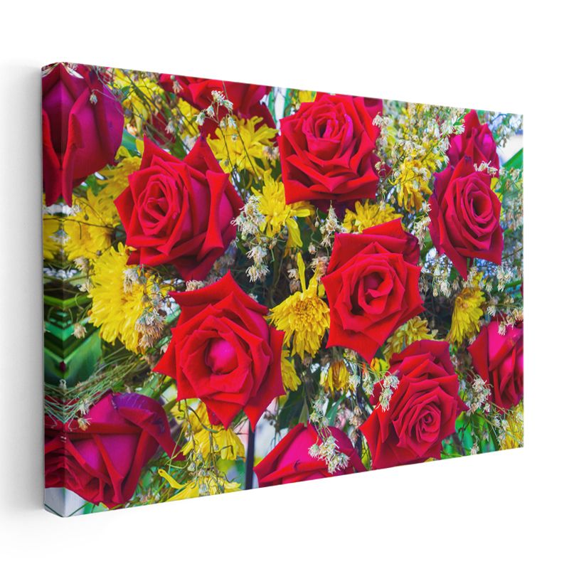 Kırmızı Güller - Canlı Renkli Çiçek Buketi Kanvas Tablo