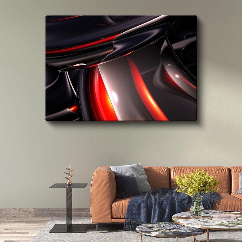 Kırmızı Işık - Metalik Soyut Kompozisyon Kanvas Tablo
