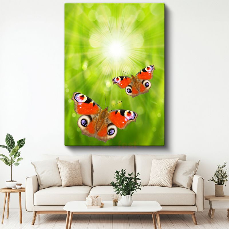 Kırmızı Kelebekler - Işıltılı Doğa Dansı Kanvas Tablo