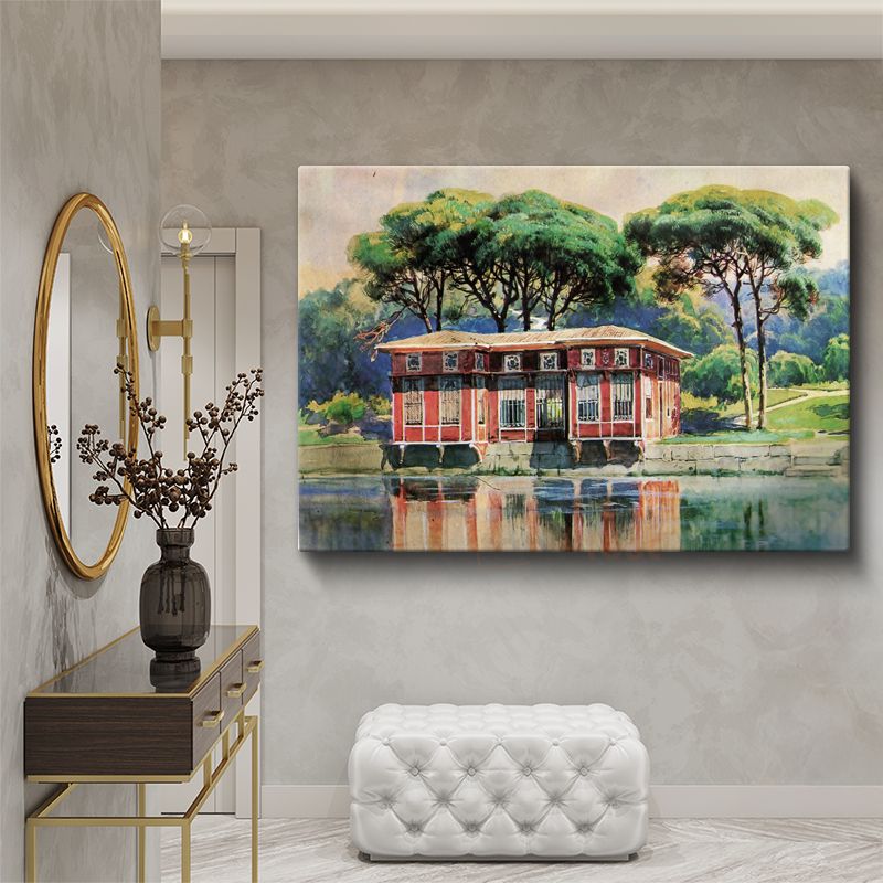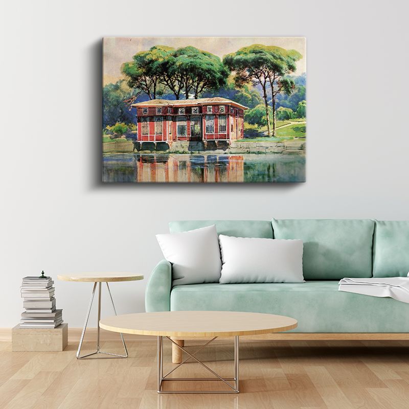 Kırmızı Köşk - Su Kenarında Yalı Kanvas Tablo