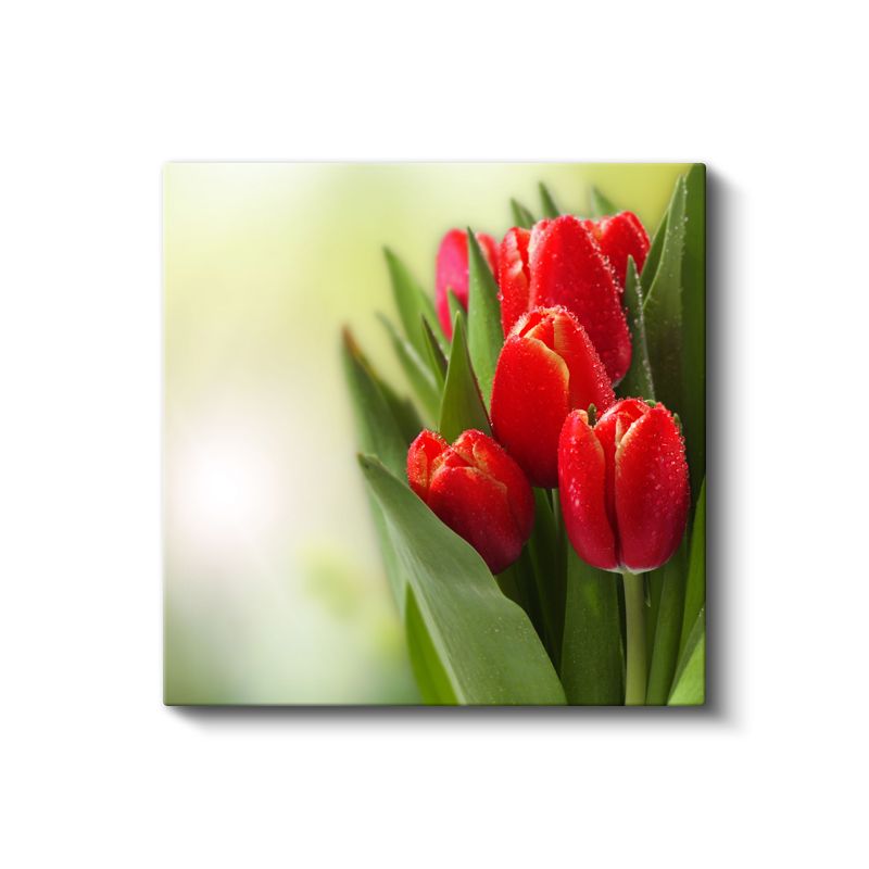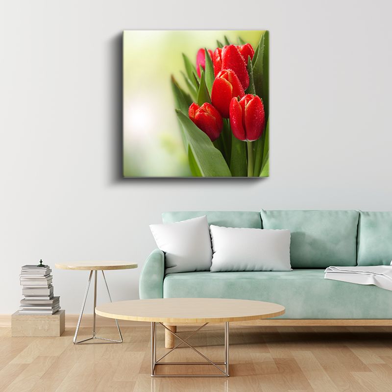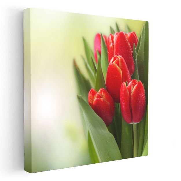 Kırmızı Laleler - Çiy Damlacıklı Zarif Çiçek Portresi Kanvas Tablo