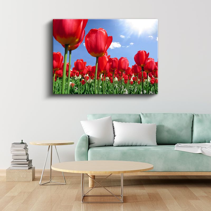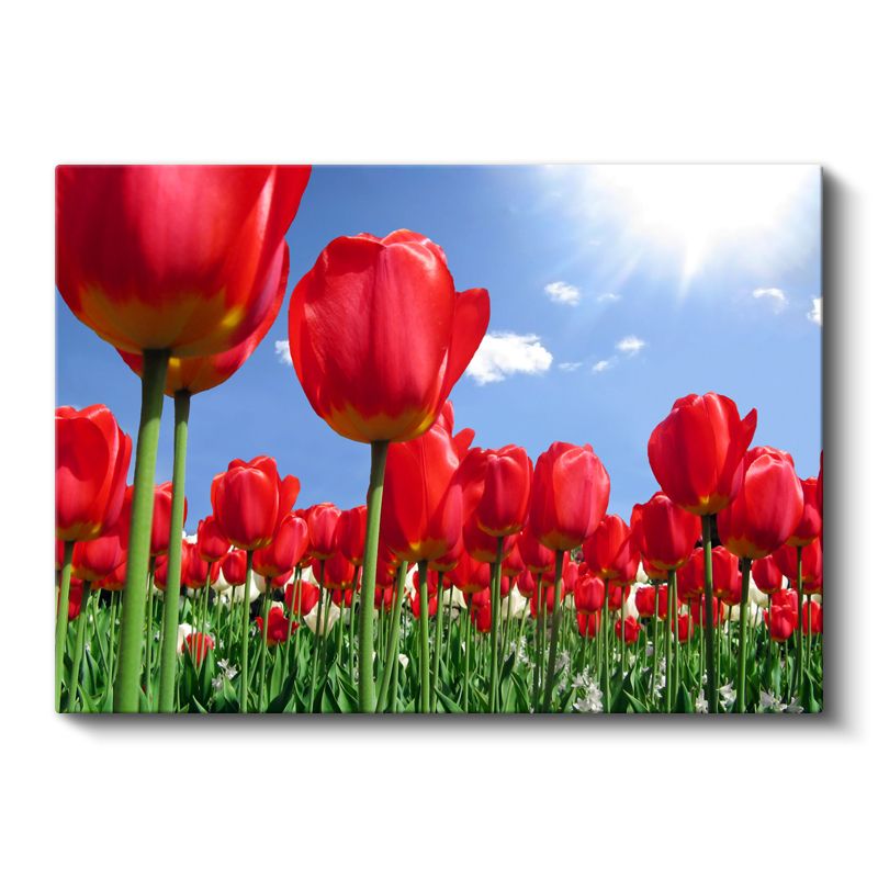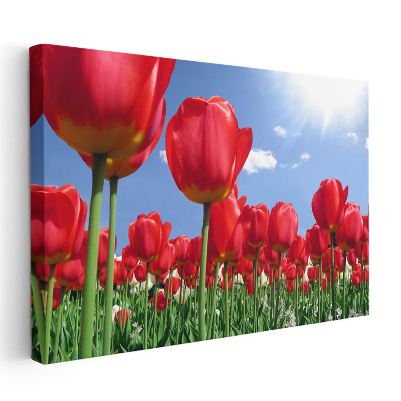 Kırmızı Laleler - Mavi Gökyüzü Altında Çiçek Tarlası Kanvas Tablo