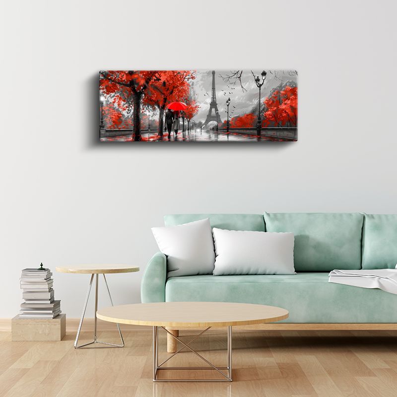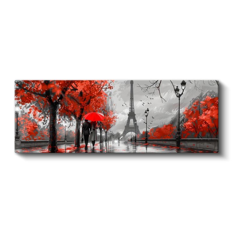 Kırmızı Paris - Şemsiyeli Eyfel Manzarası Kanvas Tablo