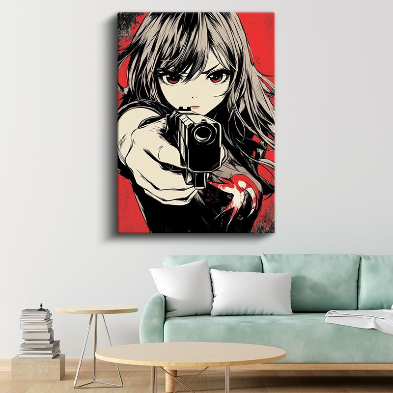 Kırmızı Silüet - Aksiyon Anime Kızı Anime Kanvas Tablo