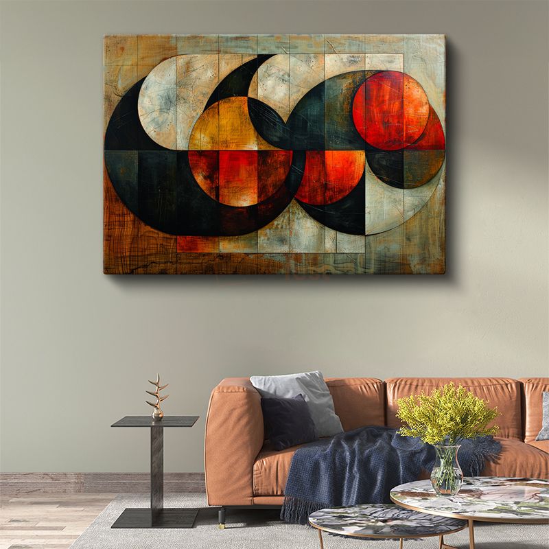 Kırmızı Yarım Daireler - Geometrik Soyut Kompozisyon Kanvas Tablo