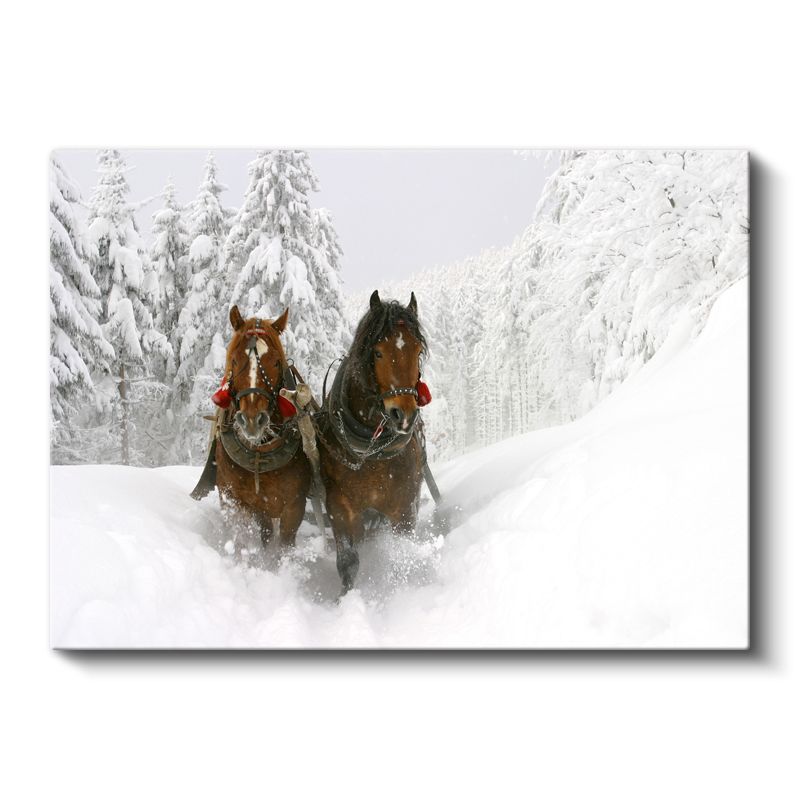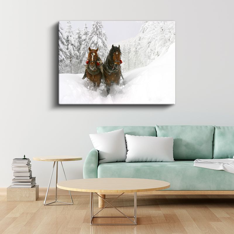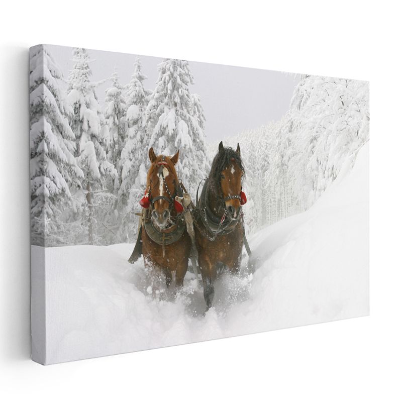 Kış Atları - Karlı Ormanda Koşan İkili Kanvas Tablo