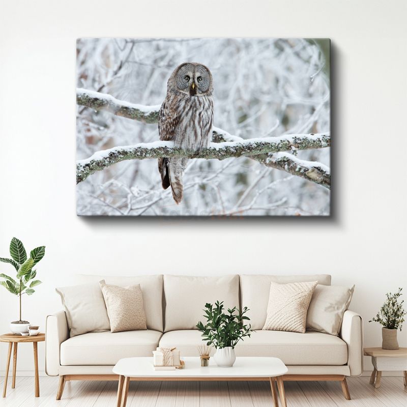 Kış Baykuşu - Karlı Dalda Sessiz Gözlemci Kanvas Tablo